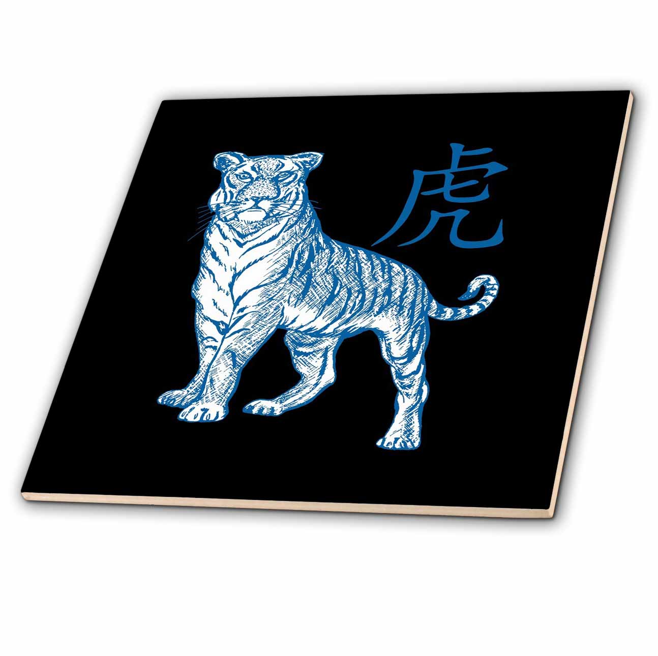 Year Of The Tiger Laohu Chinese Character In Blue Tile is great for a backsplash, countertop or as an accent. This commercial quality construction grade tile has a high gloss finish. The image is applied to the top surface and can be cleaned with a mild detergent.