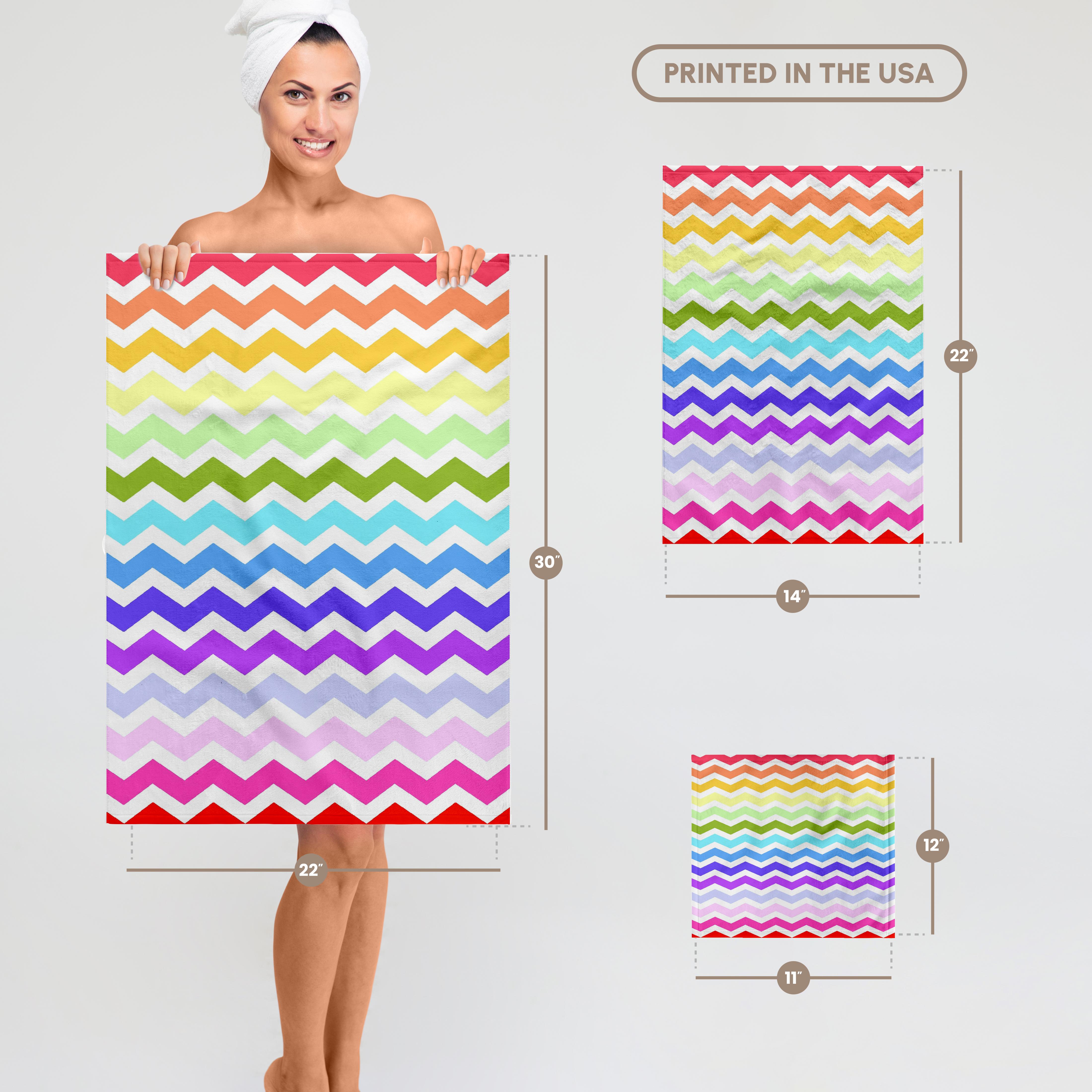 3dRose Bright Colorful Rainbow Chevron Zig Zag Stripes aka Multicolored - Towels (twl-56650)