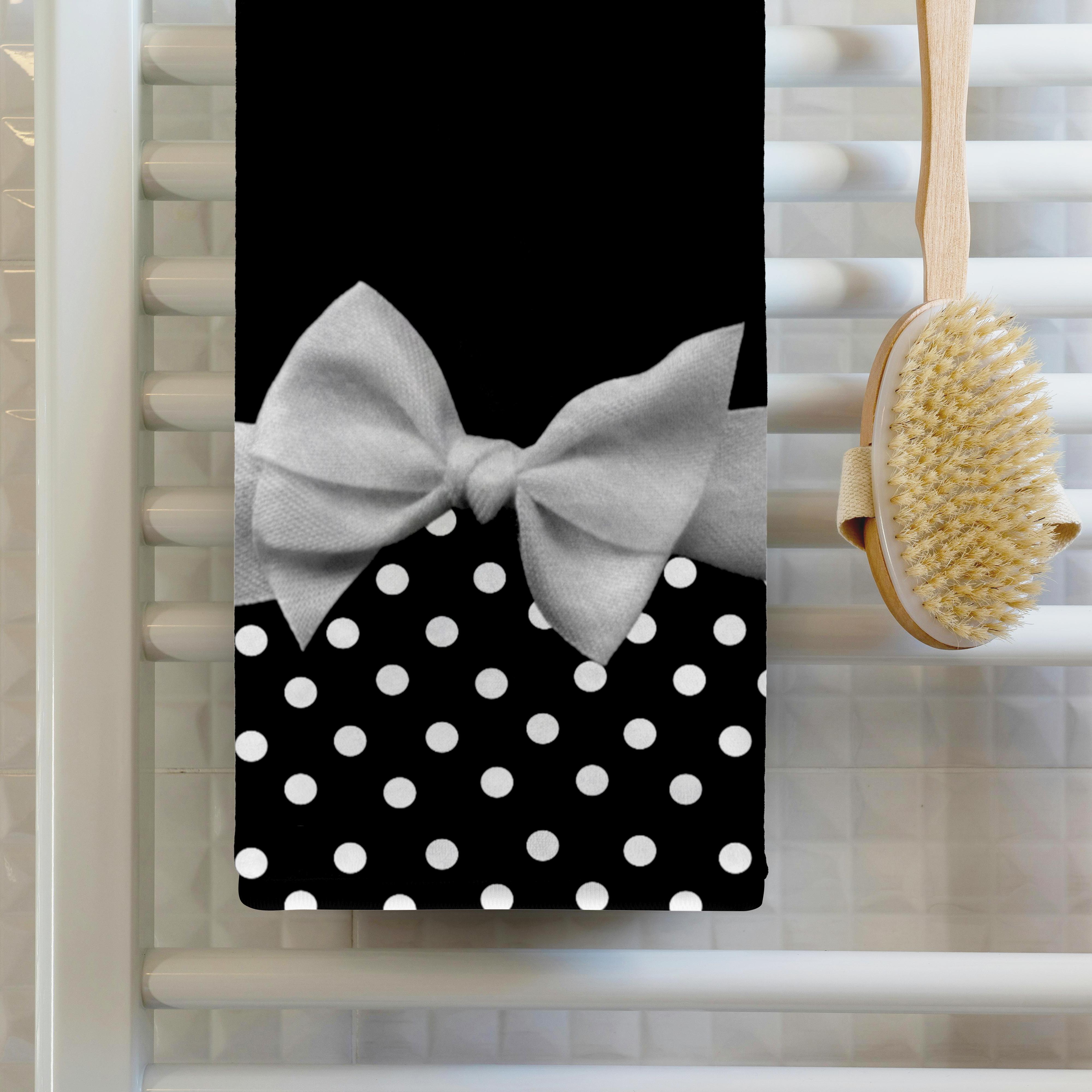 3dRose Cute Fifties Style Black and White Polka dot Pattern with Elegant... - Towels (twl-56662)