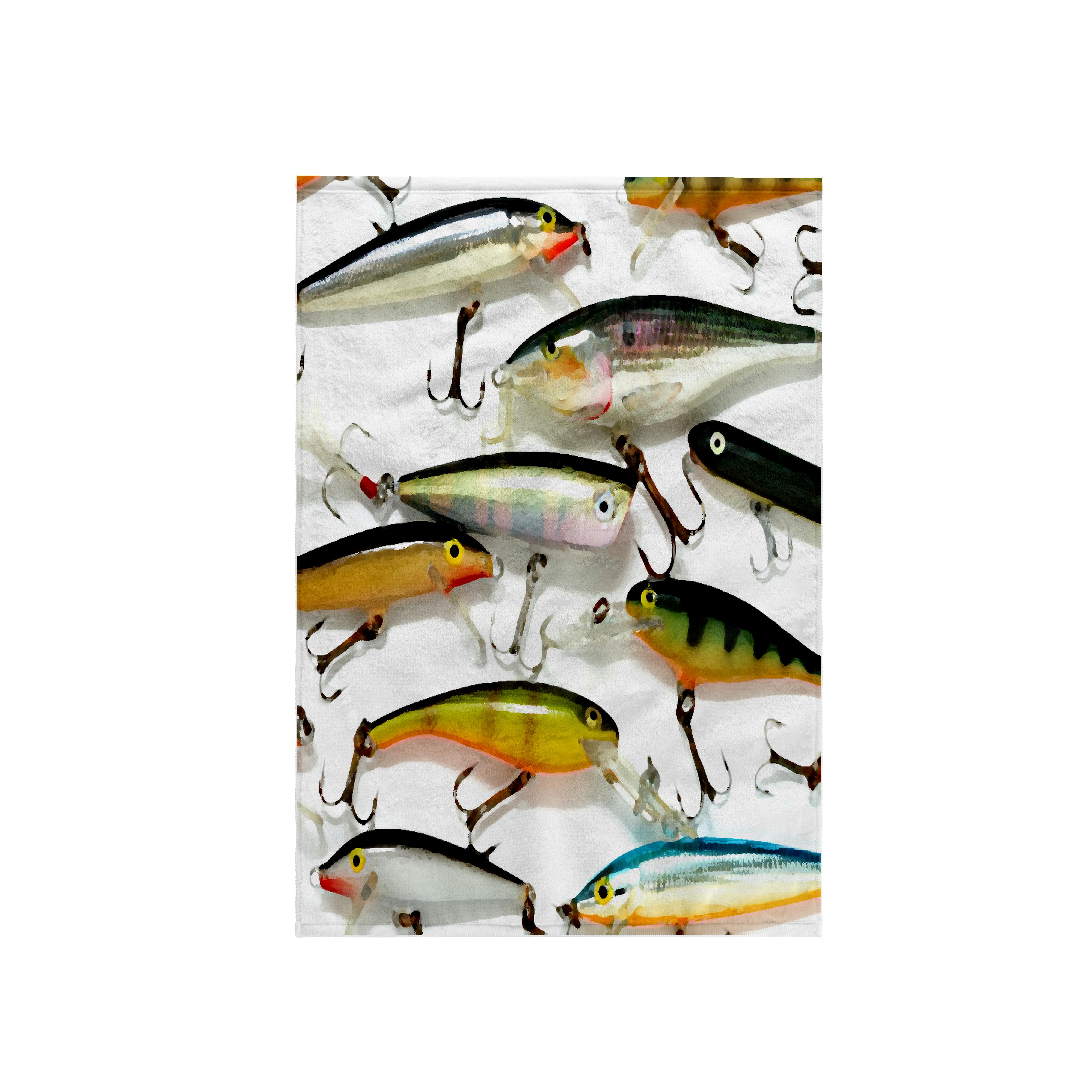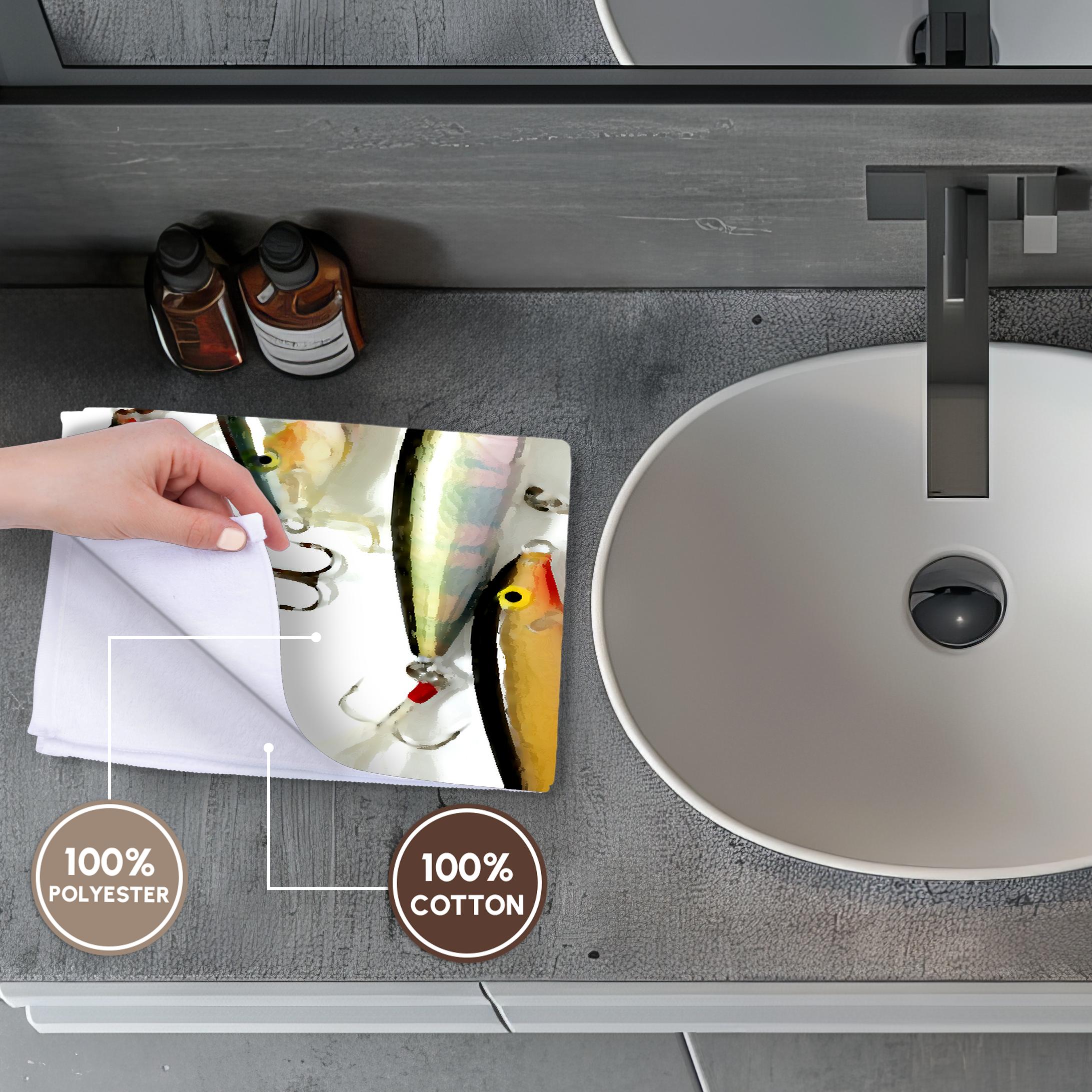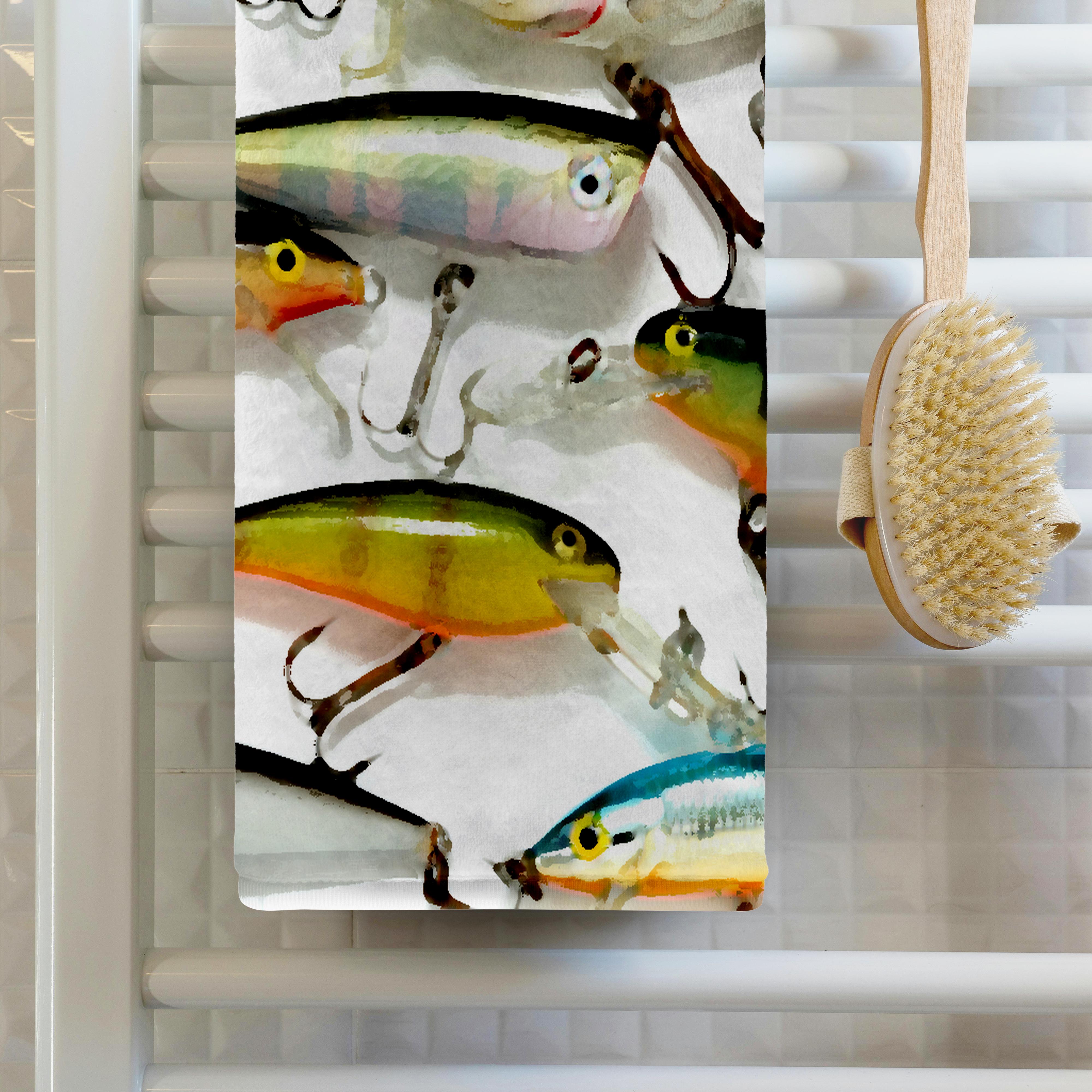 Fly fishing Lures Towel is great to use in the kitchen, bathroom or gym. This 15 by 22 inch, hand/sports towel allows you to customize your room with a special design or color. Great for drying dishes, hands and faces. Suitable to put in any sports bag. Image will not fade after washing. Machine wash, tumble dry low, do not bleach. Towel will regain its fullness after the first washing. Made of: Printed side 100% polyester and reverse side 100% Terrycloth cotton. Image printed on polyester side/ terry cloth side is blank white.