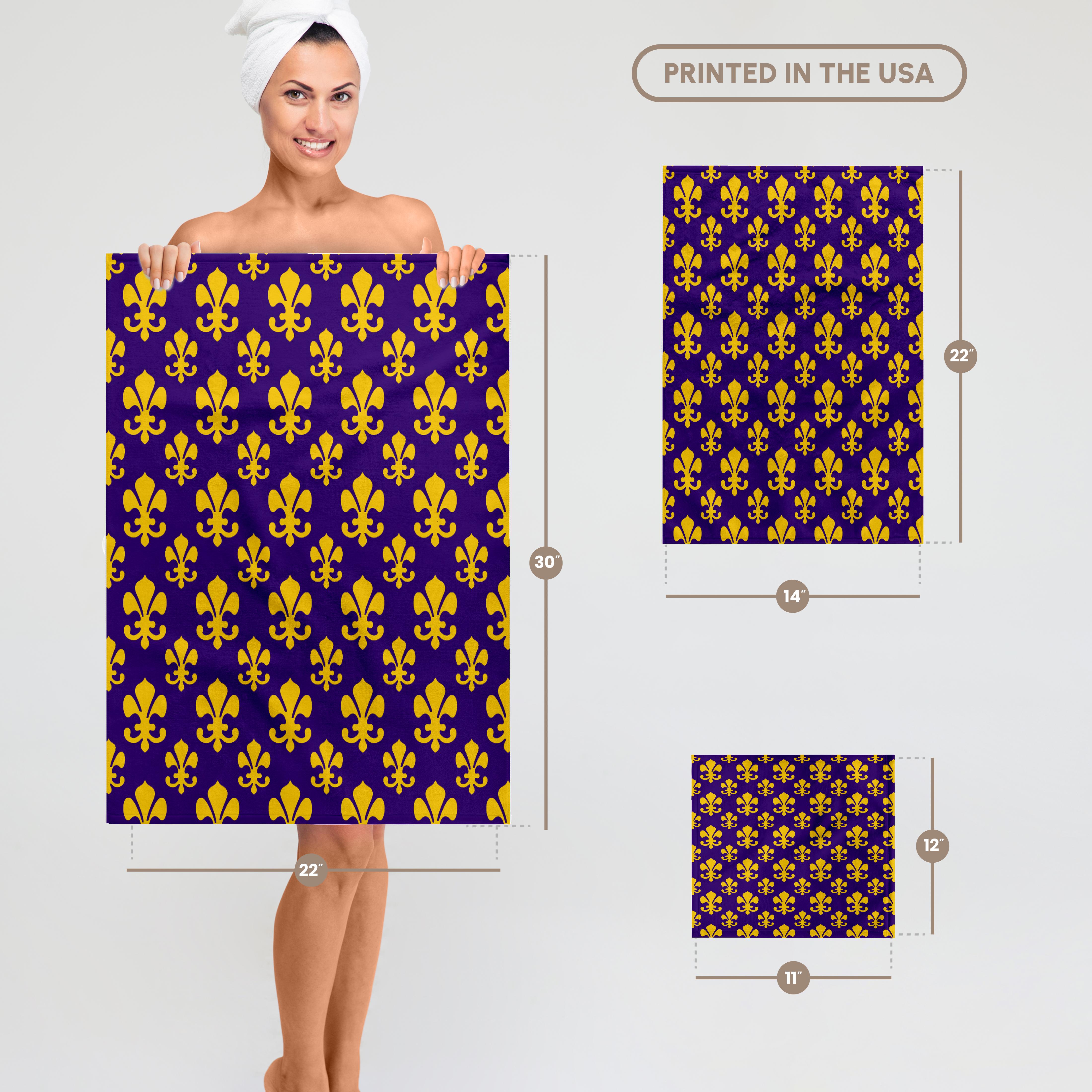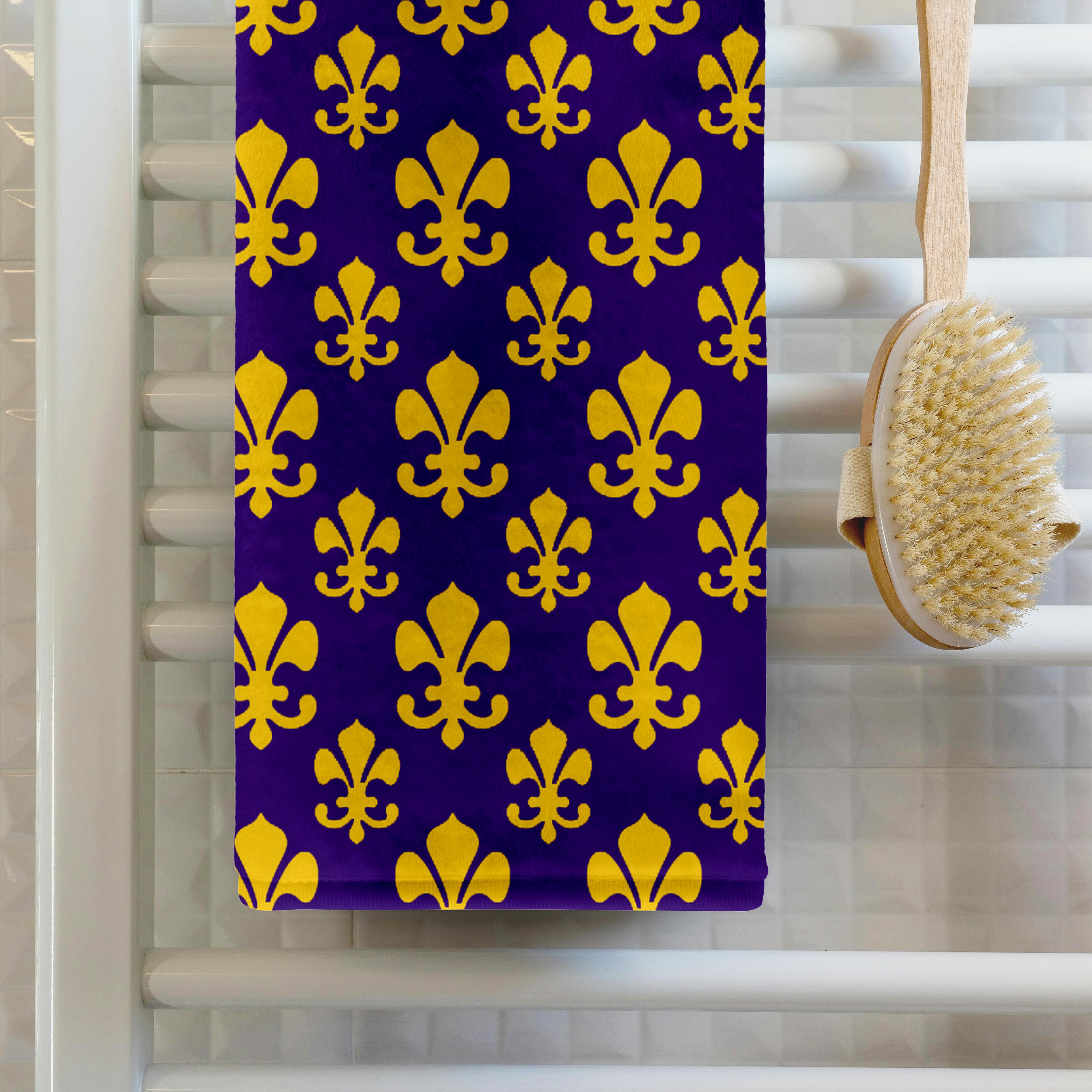 3dRose Fleur de lis Pattern in LSU Colors Dark Purple and Canary Yellow - Towels (twl-31334)