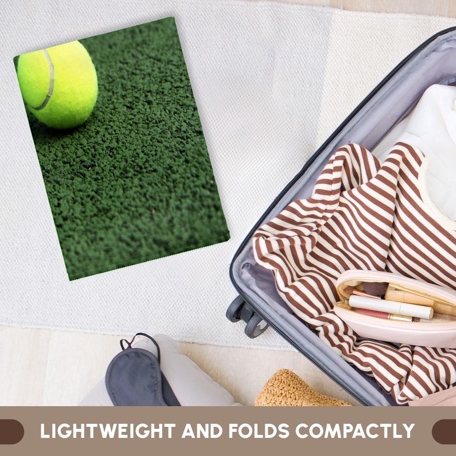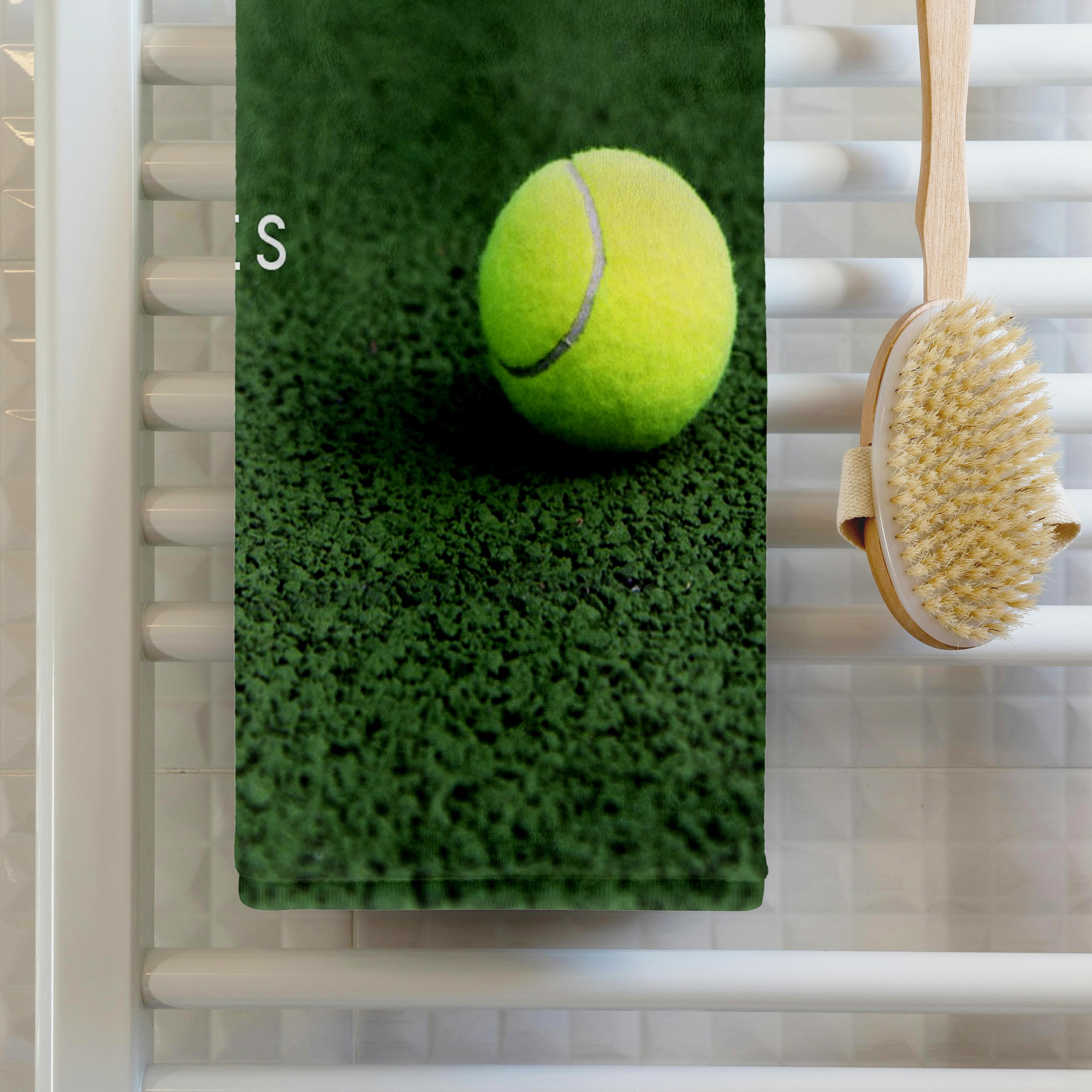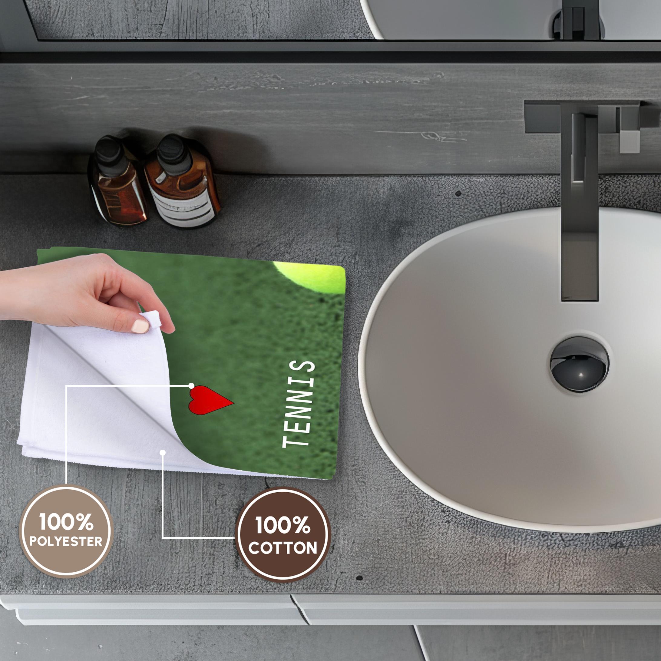 I Love Tennis Towel is great to use in the kitchen, bathroom or gym. This 15 by 22 inch, hand/sports towel allows you to customize your room with a special design or color. Great for drying dishes, hands and faces. Suitable to put in any sports bag. Image will not fade after washing. Machine wash, tumble dry low, do not bleach. Towel will regain its fullness after the first washing. Made of: Printed side 100% polyester and reverse side 100% Terrycloth cotton. Image printed on polyester side/ terry cloth side is blank white.