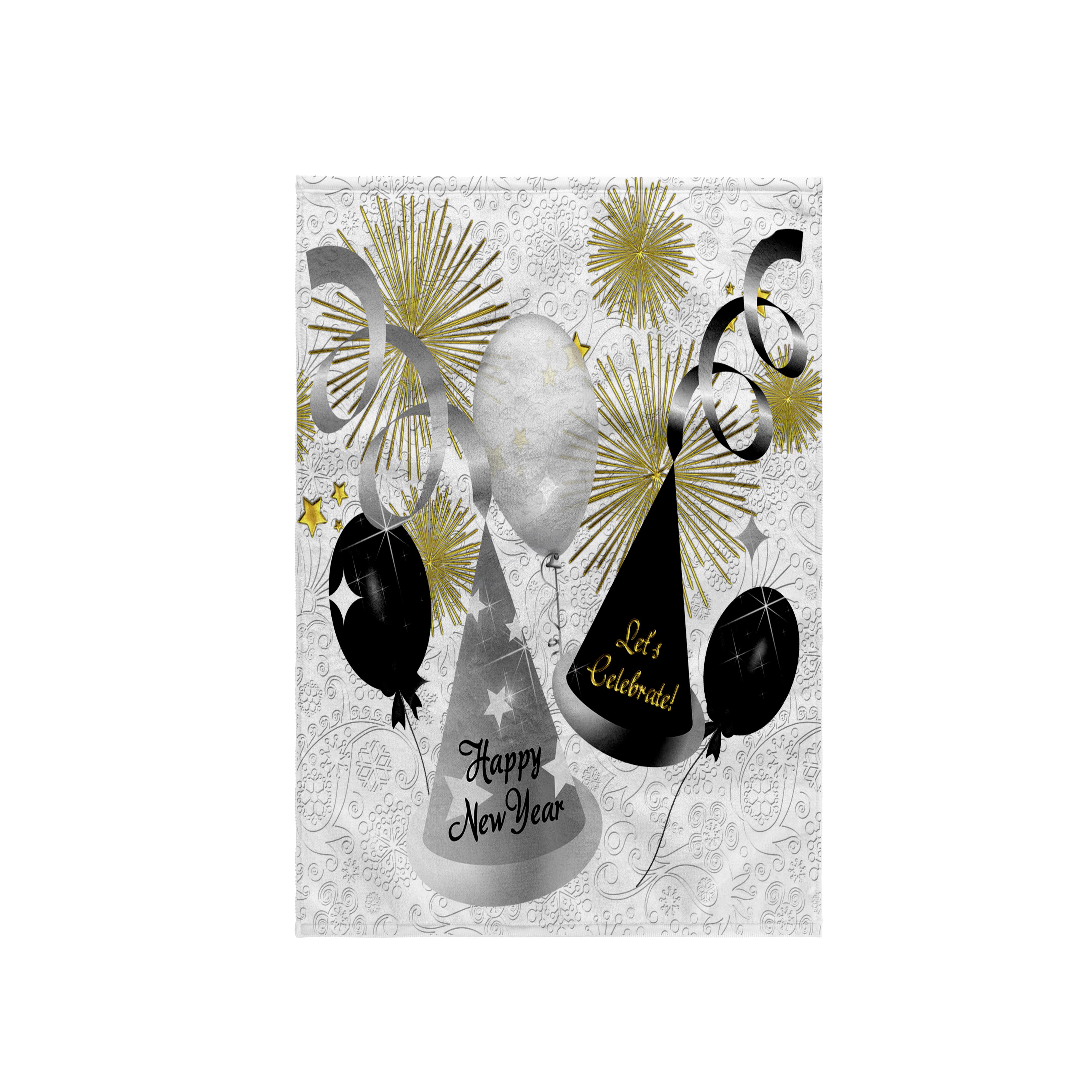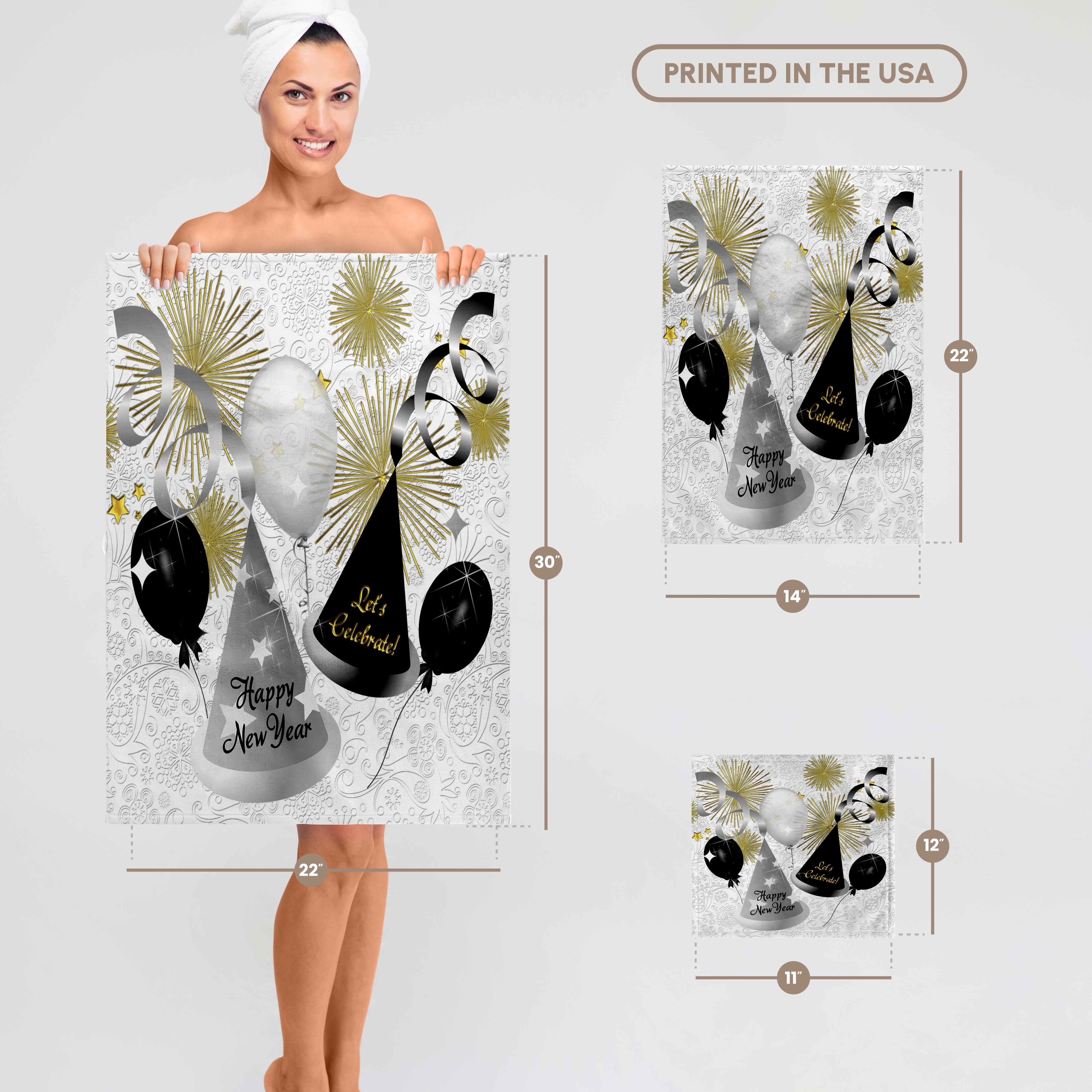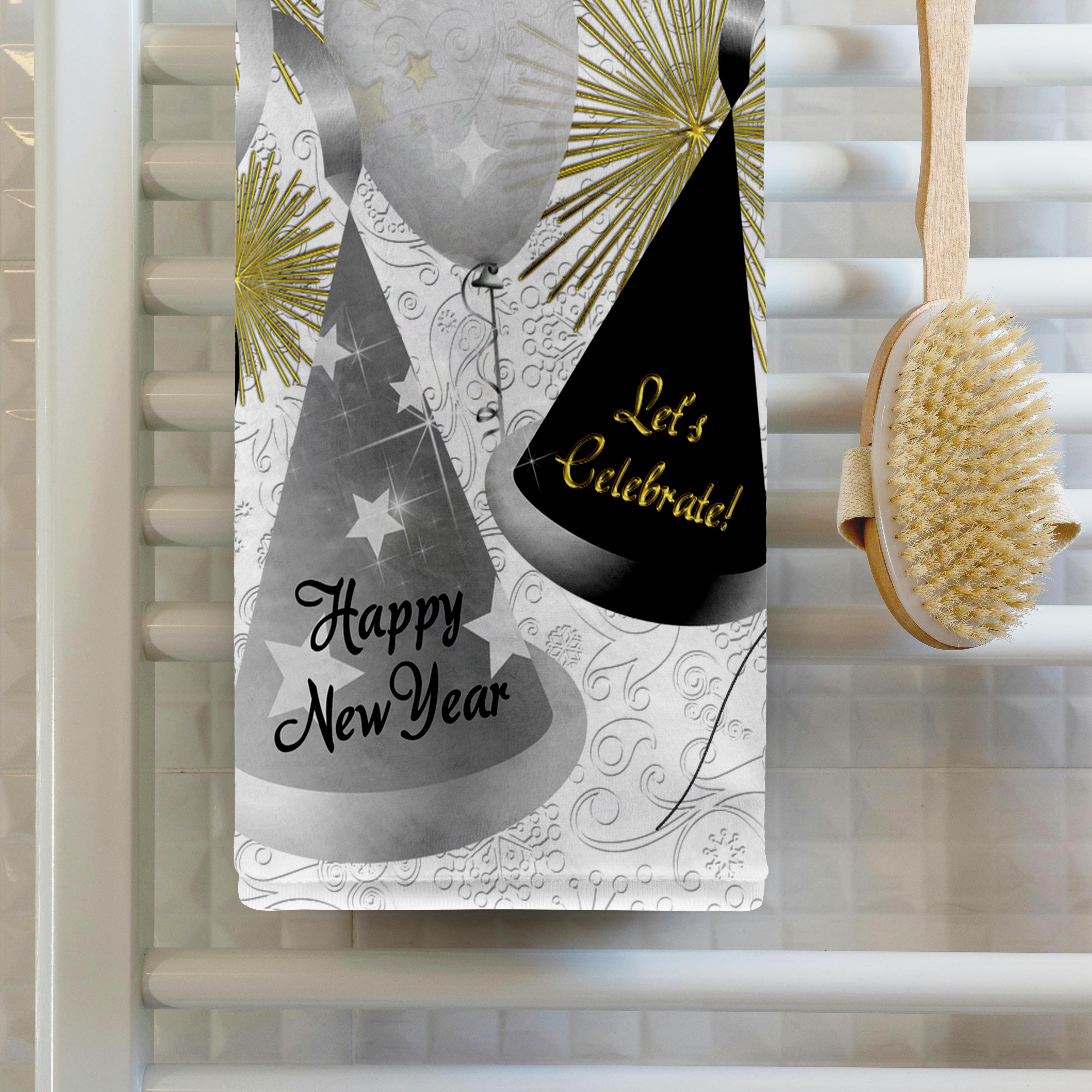 3dRose Happy New Year Black, White and Gold Not Year Specific - Towels (twl-52310)