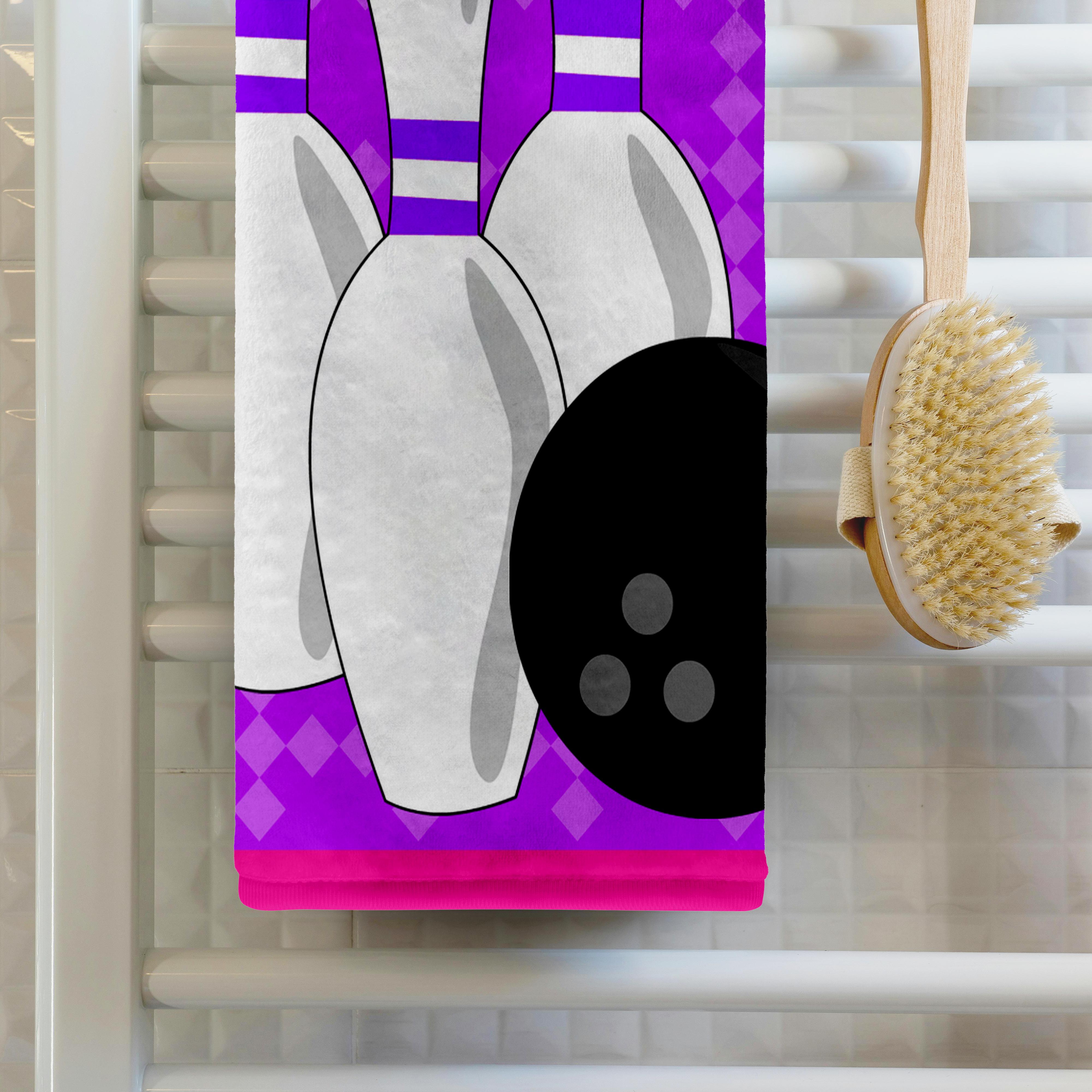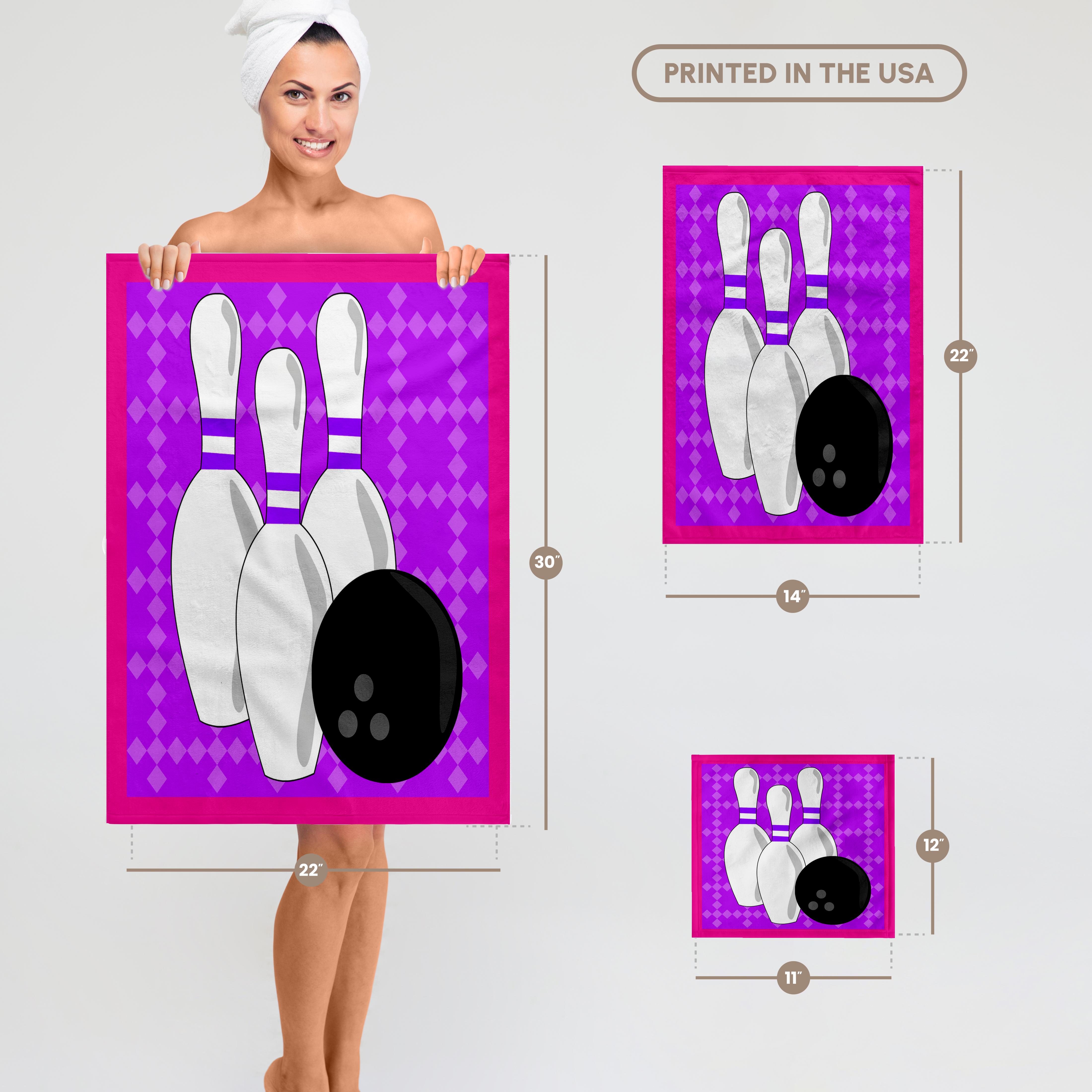 3dRose Janna Salak Designs Bowling - Purple and Pink - Bowling Pins and Ball - Towels (twl-43148)