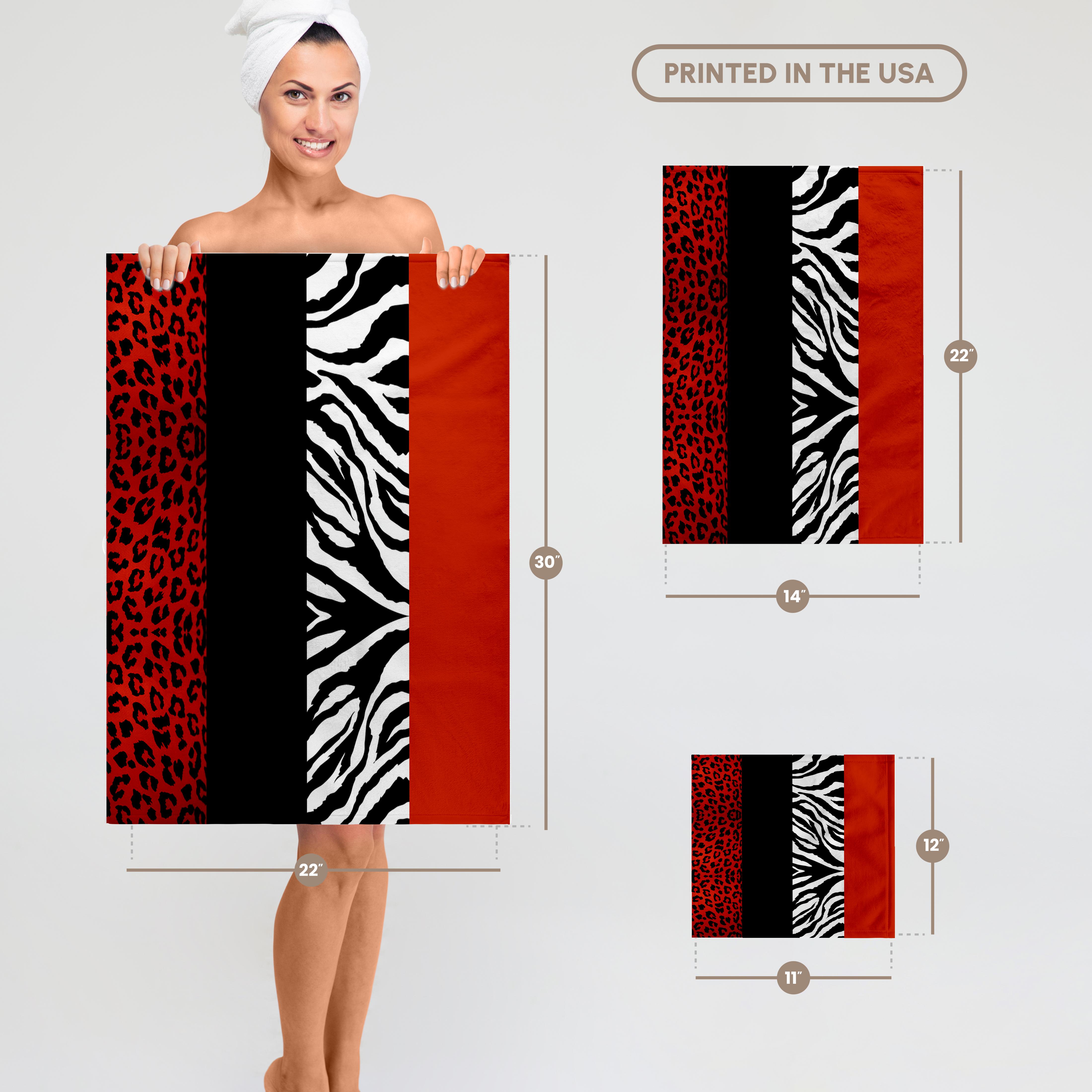 3dRose Red, Black, Orange and White Animal Print - Leopard and Zebra - Towels (twl-35438)
