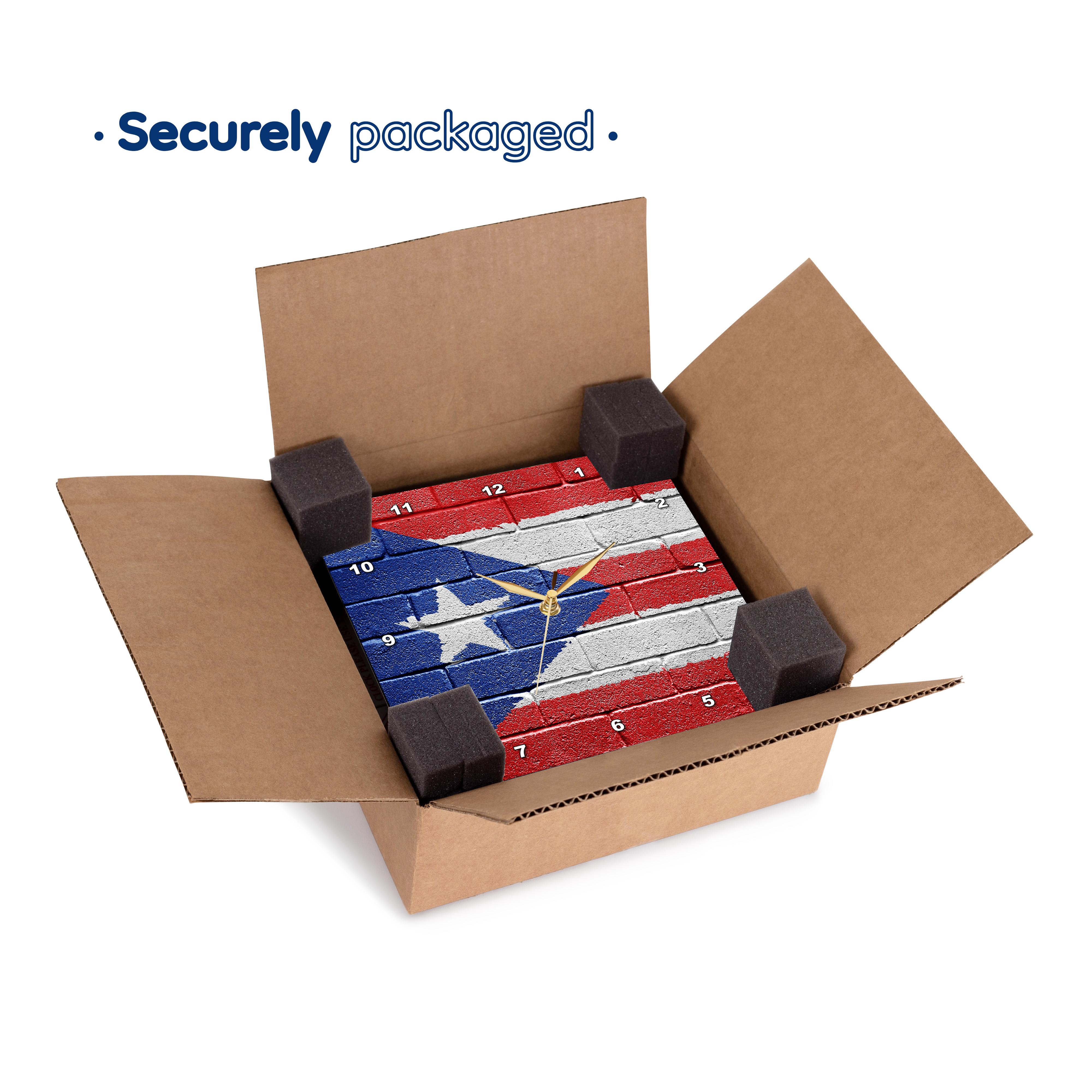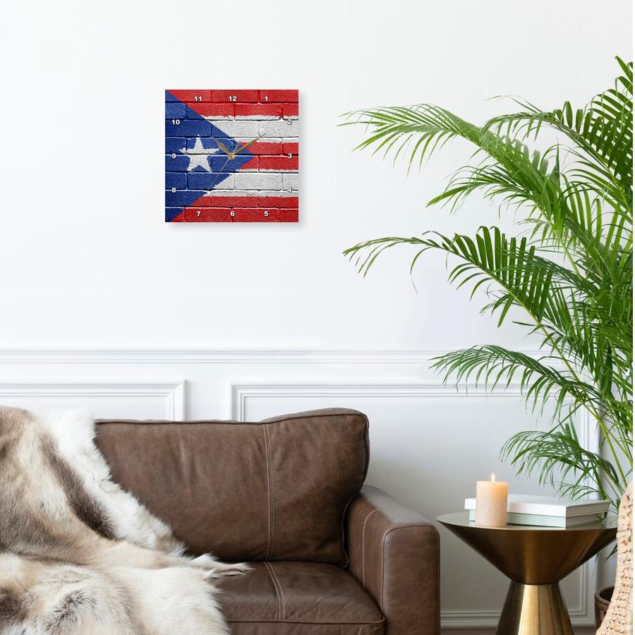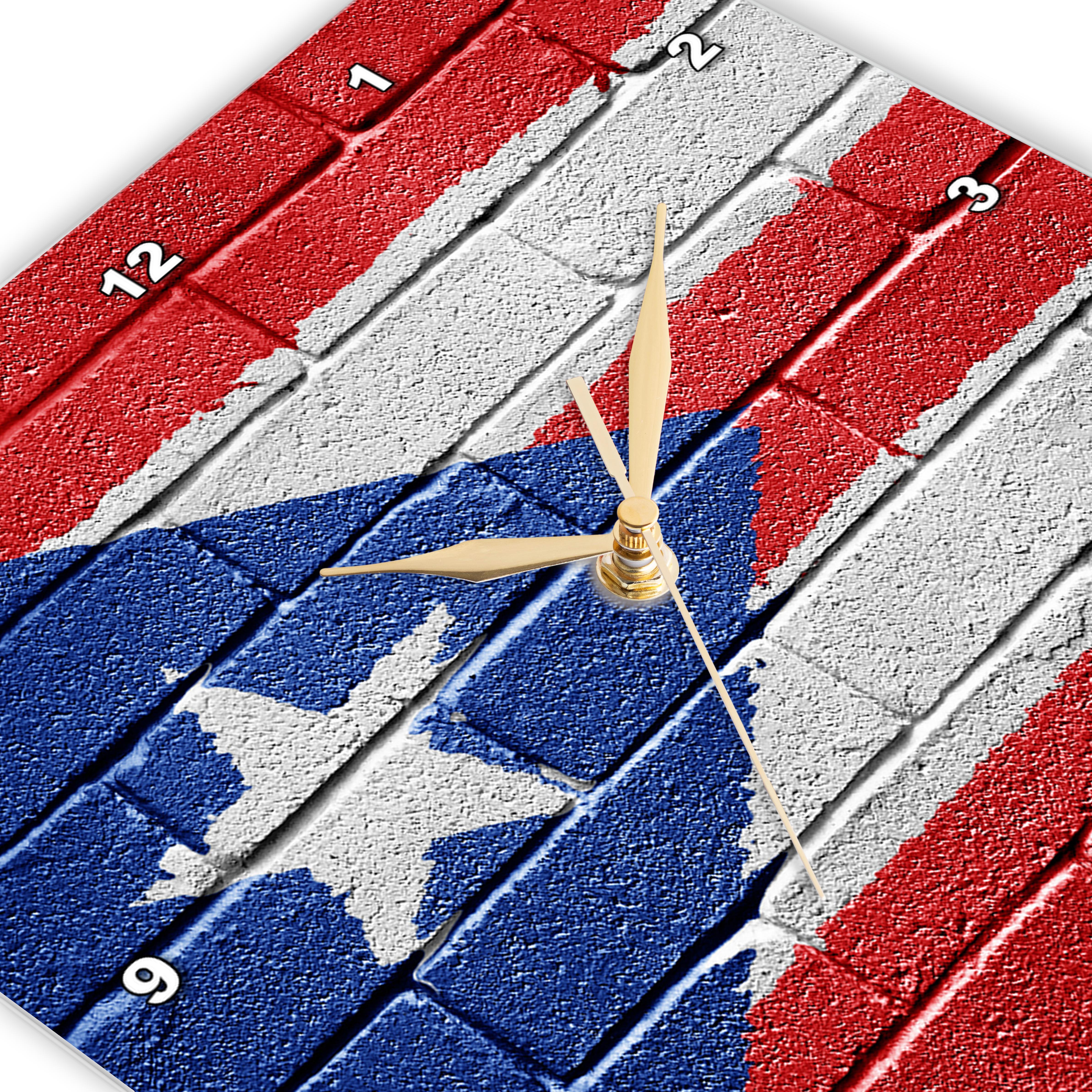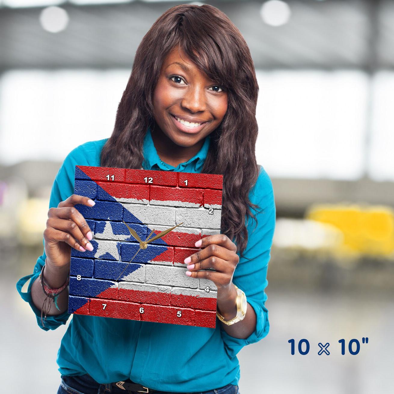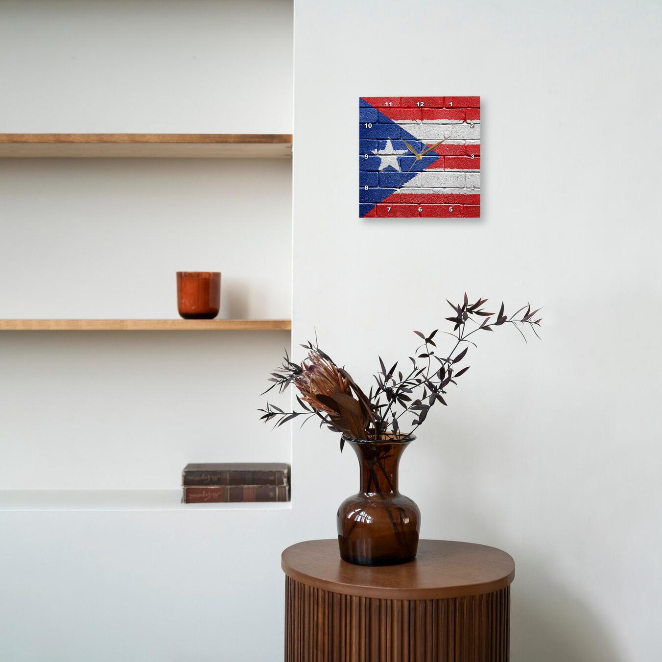3dRose Carsten Reisinger Illustrations - National Flag of Puerto Rico Painted onto a Brick Wall Rican - Wall Clocks (DPP_156970)
