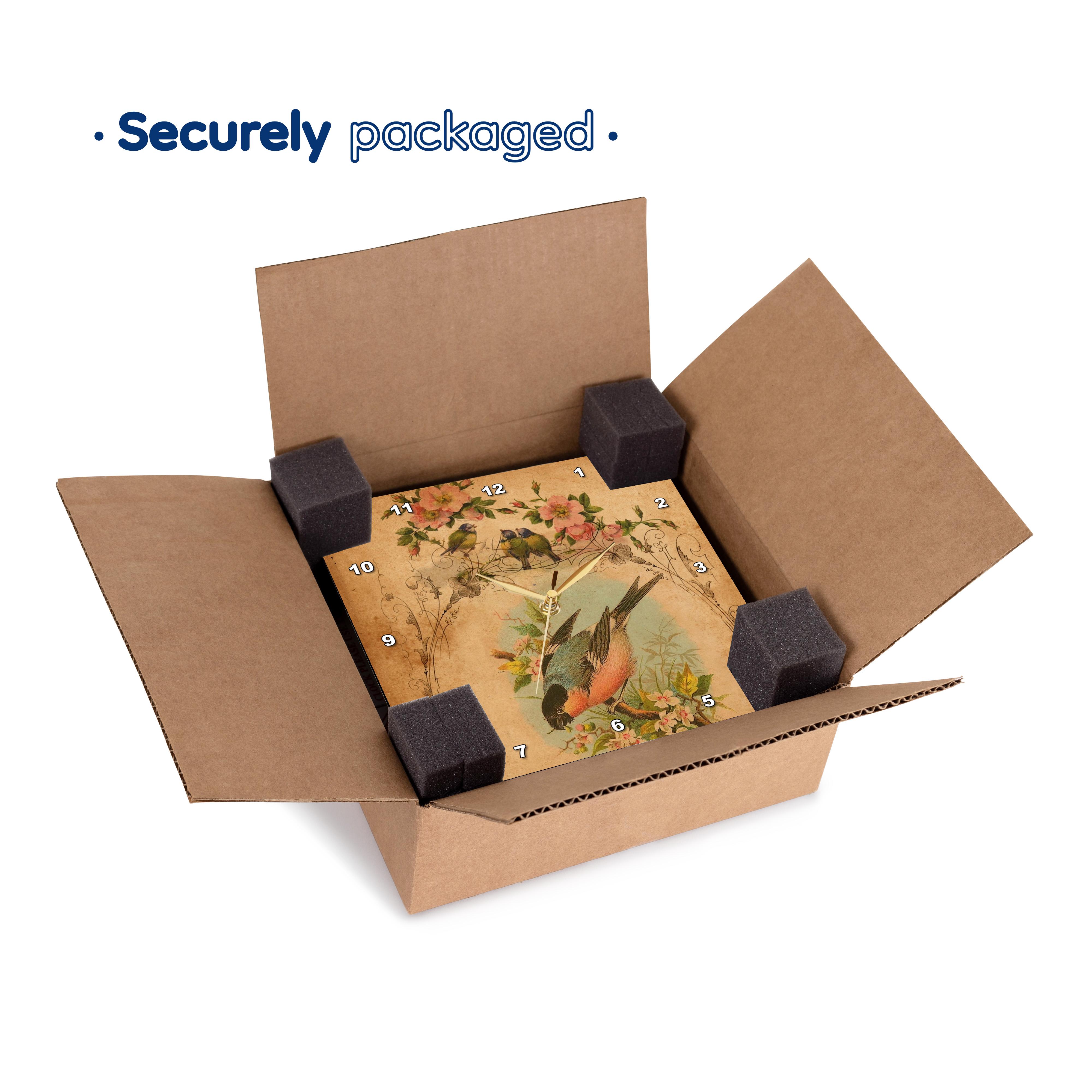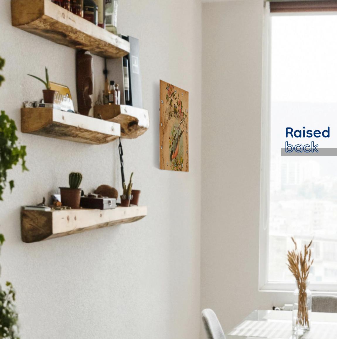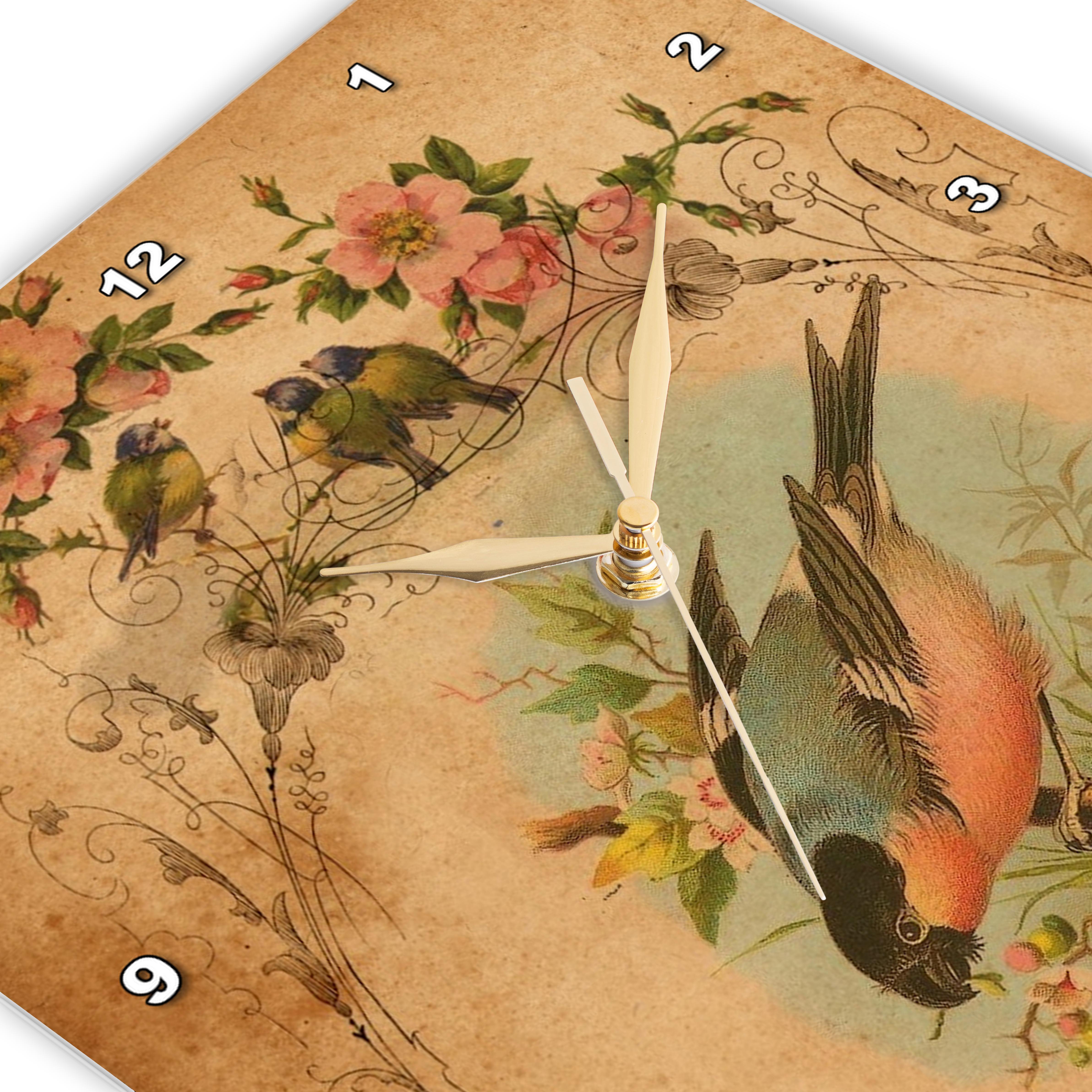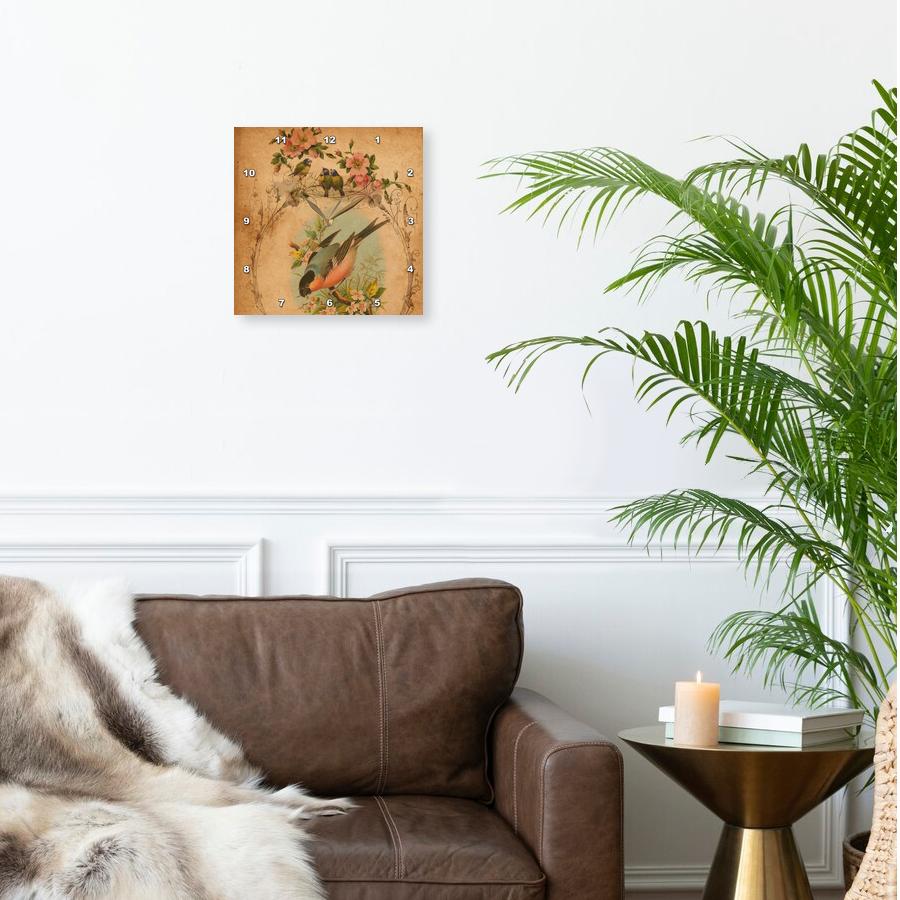 Vintage Birds Digital Art Wall Clock is a wonderful complement to any room in your home or office. Made of durable high grade aluminum. This frame-less clock has a high gloss mirror like, UV coated, scratch resistant finish and is suitable for a moist environment. Sizes available range from 10" x 10" to 15" x 15". Requires one AA battery; not included. Battery box is not covered. Made in USA.