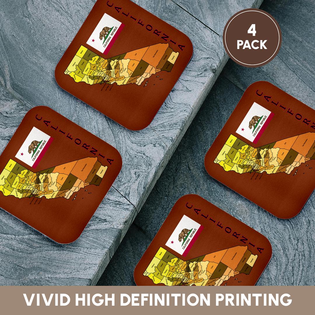 3dRose 777images Flags and Maps - States - Map and flag of the State of California with all counties colored. - Coasters (cst_172011)