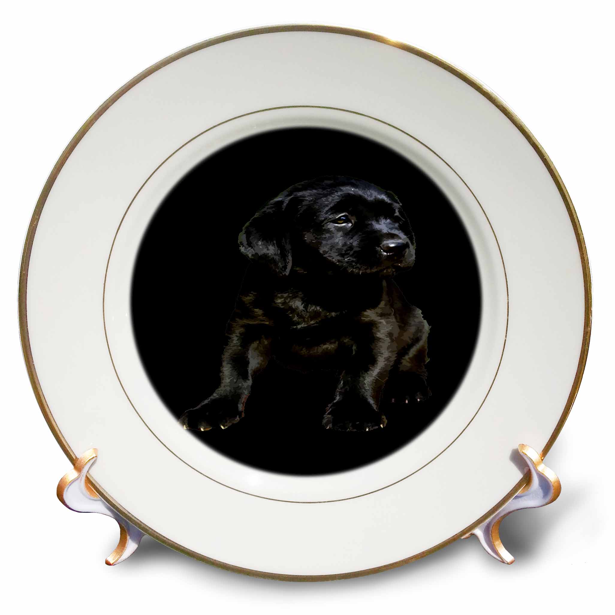 3dRose Adorable and Cute Black Labrador Sitting Puppy Vector - Plates (cp_356583)