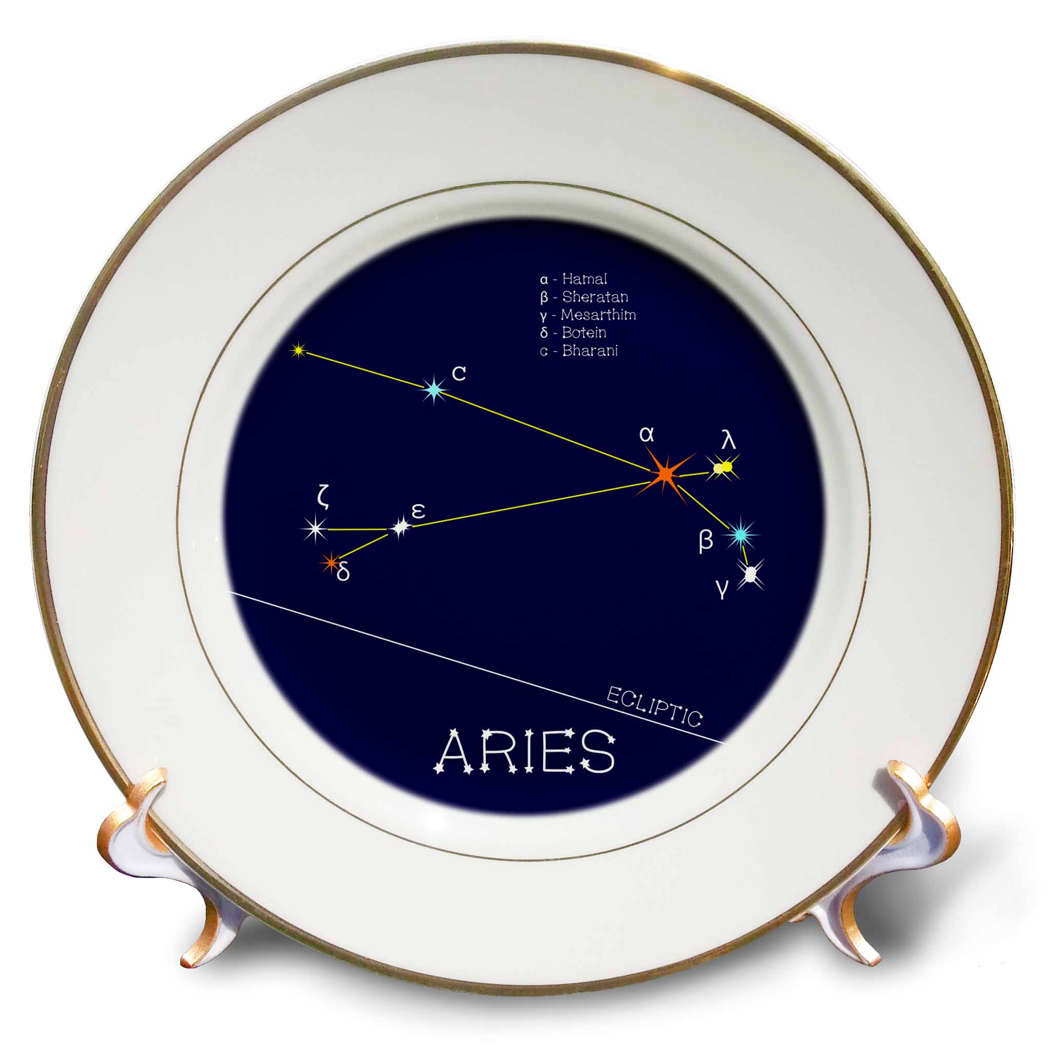 3dRose Alexis Design - Constellations of Stars - Zodiac Constellation Aries - Ram, Colorful Stars, Dark Blue Sky - Plates