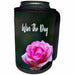 3dRose Alexis Design - Inspirational - Pink rose flower, green background. Inspirational text Win the Day - Can Cooler Bottle Wrap (cc_302666)