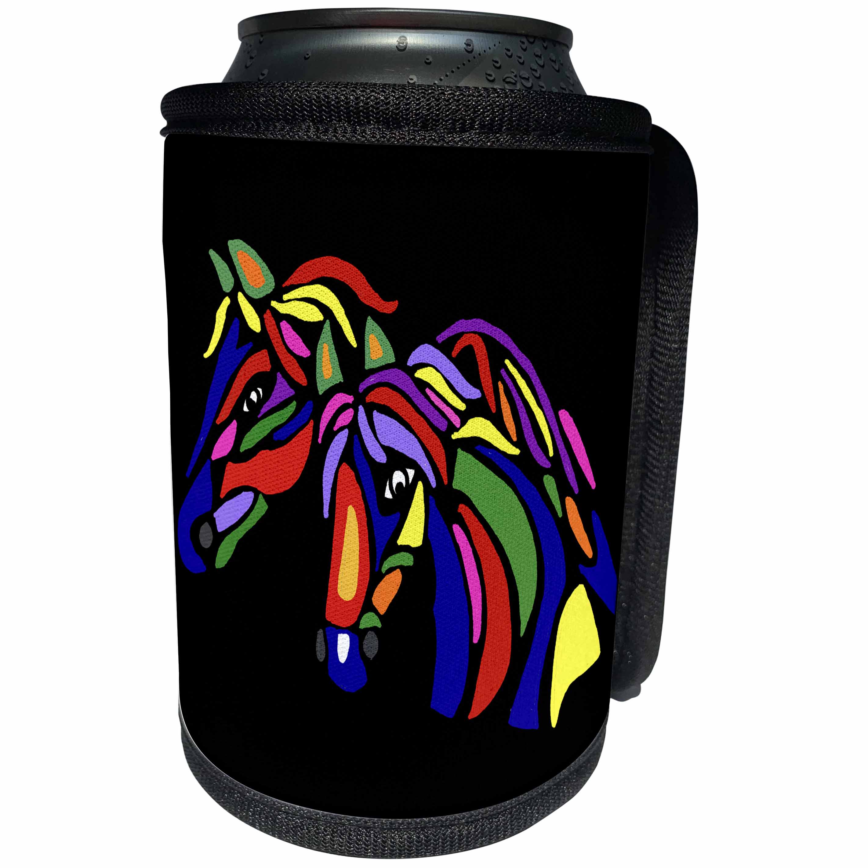 3dRose All Smiles Art Abstract - Fun Artistic Colorful Horses Abstract Art Original - Can Cooler Bottle Wrap (cc_245454)