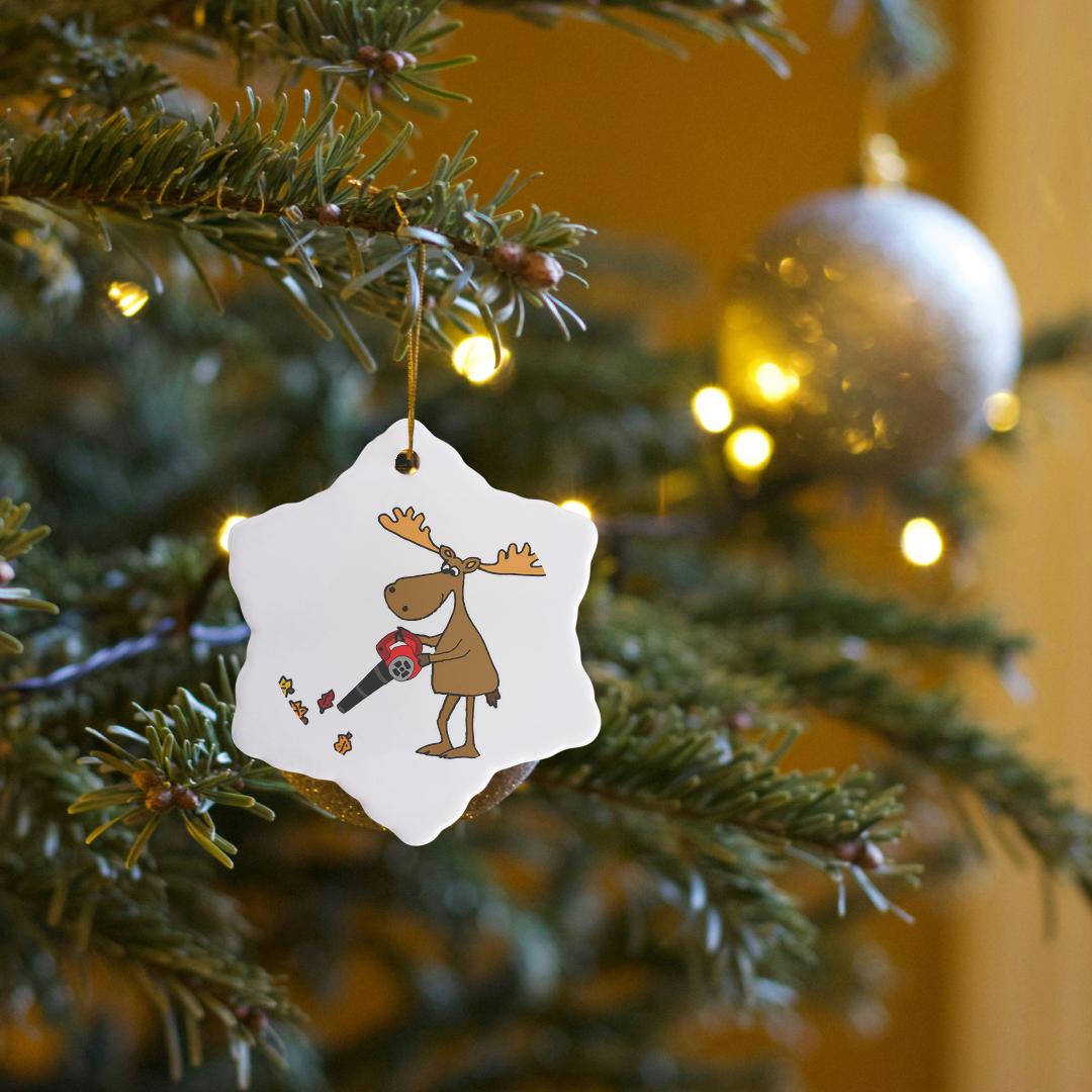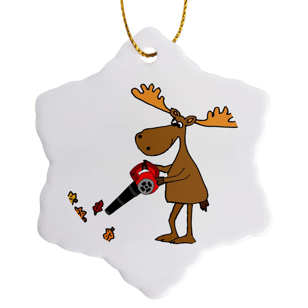 3dRose All Smiles Art Animals - Funny Cute Moose Using Leaf Blower Yard Work Cartoon - Ornaments (ORN_263877)