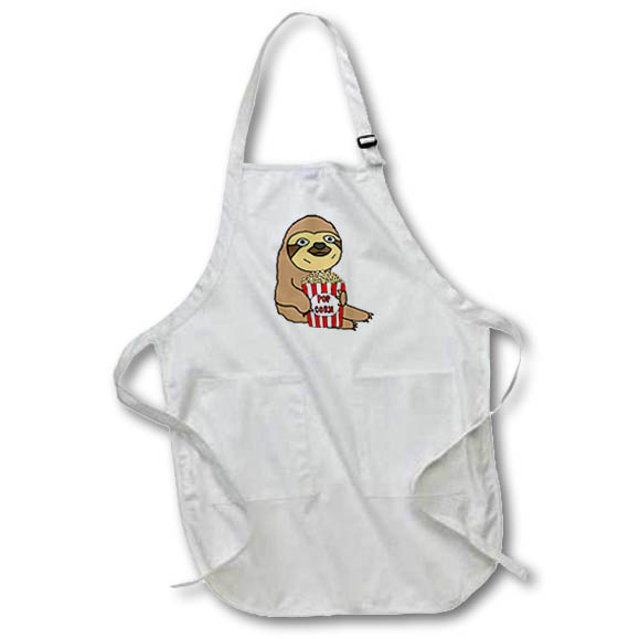 3dRose All Smiles Art Animals - Funny Cute Sloth Eating Popcorn Cartoon - Aprons (apr_256484)