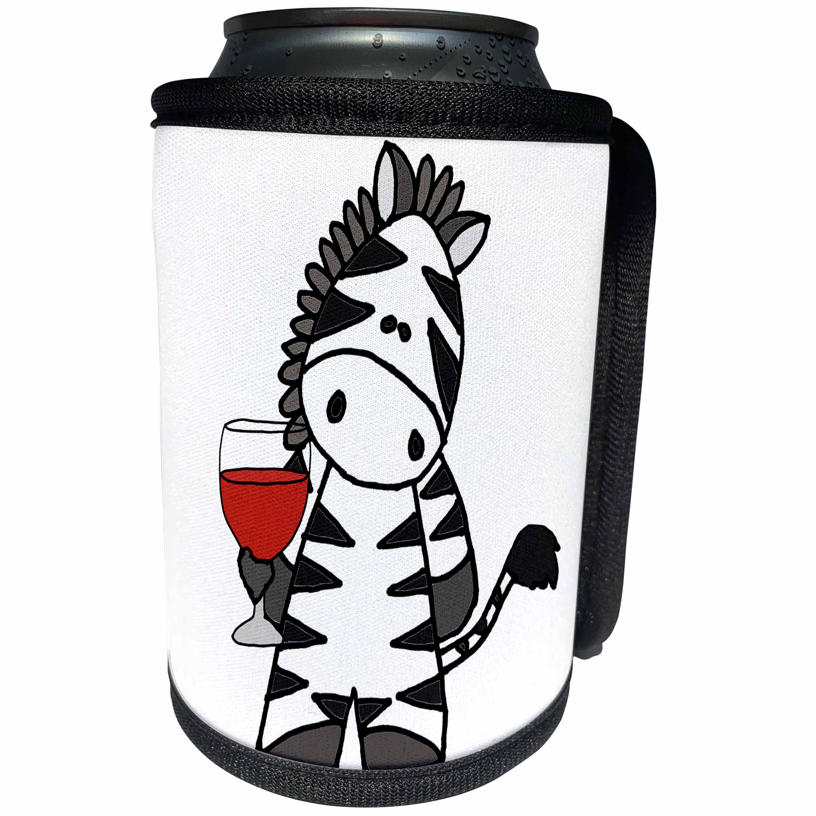 3dRose All Smiles Art - Animals - Funny Cute Zebra Drinking Red Wine Cartoon - Can Cooler Bottle Wrap (cc_298929)