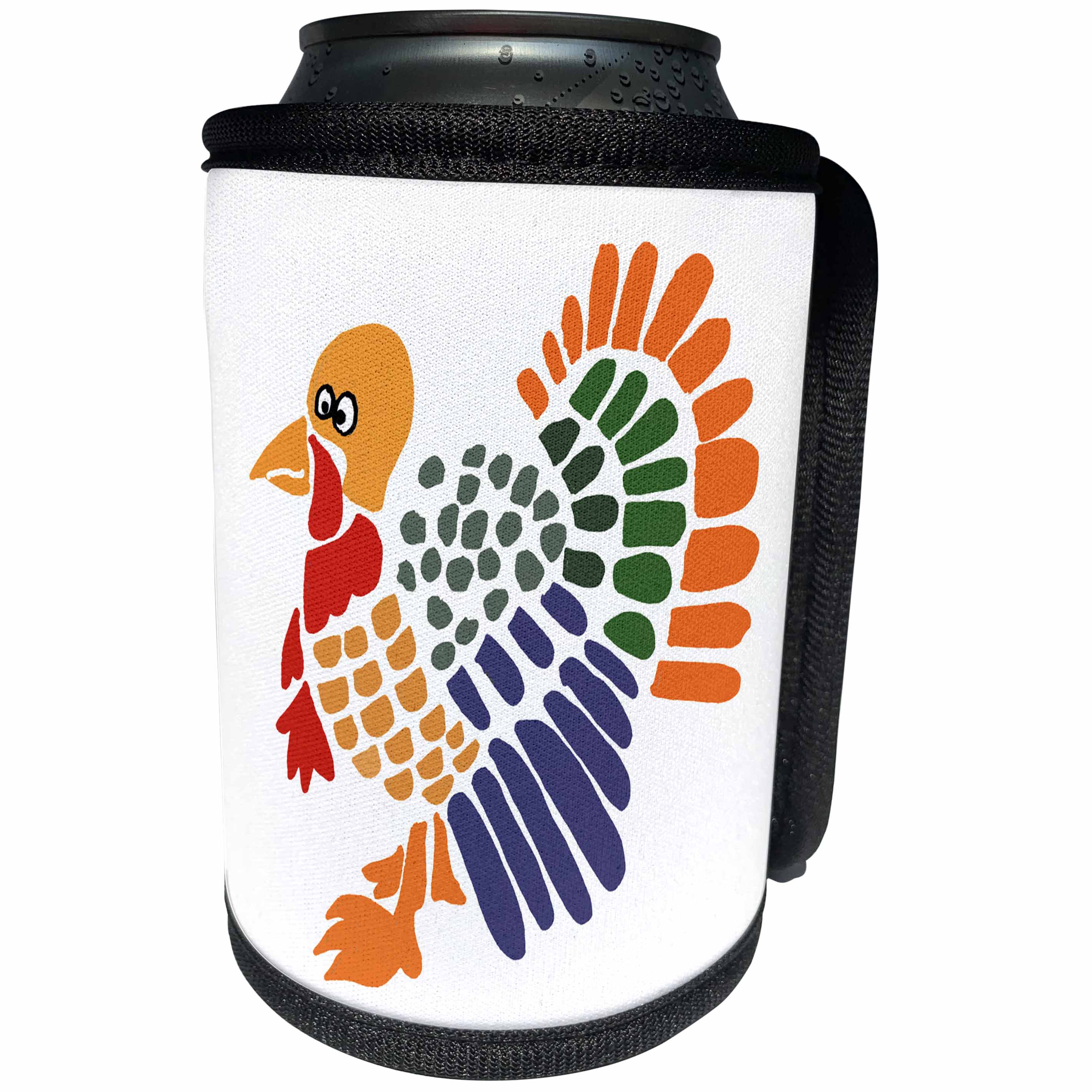 3dRose All Smiles Art Birds - Funny Artsy Colorful Turkey Bird Abstract Art - Can Cooler Bottle Wrap (cc_245434)