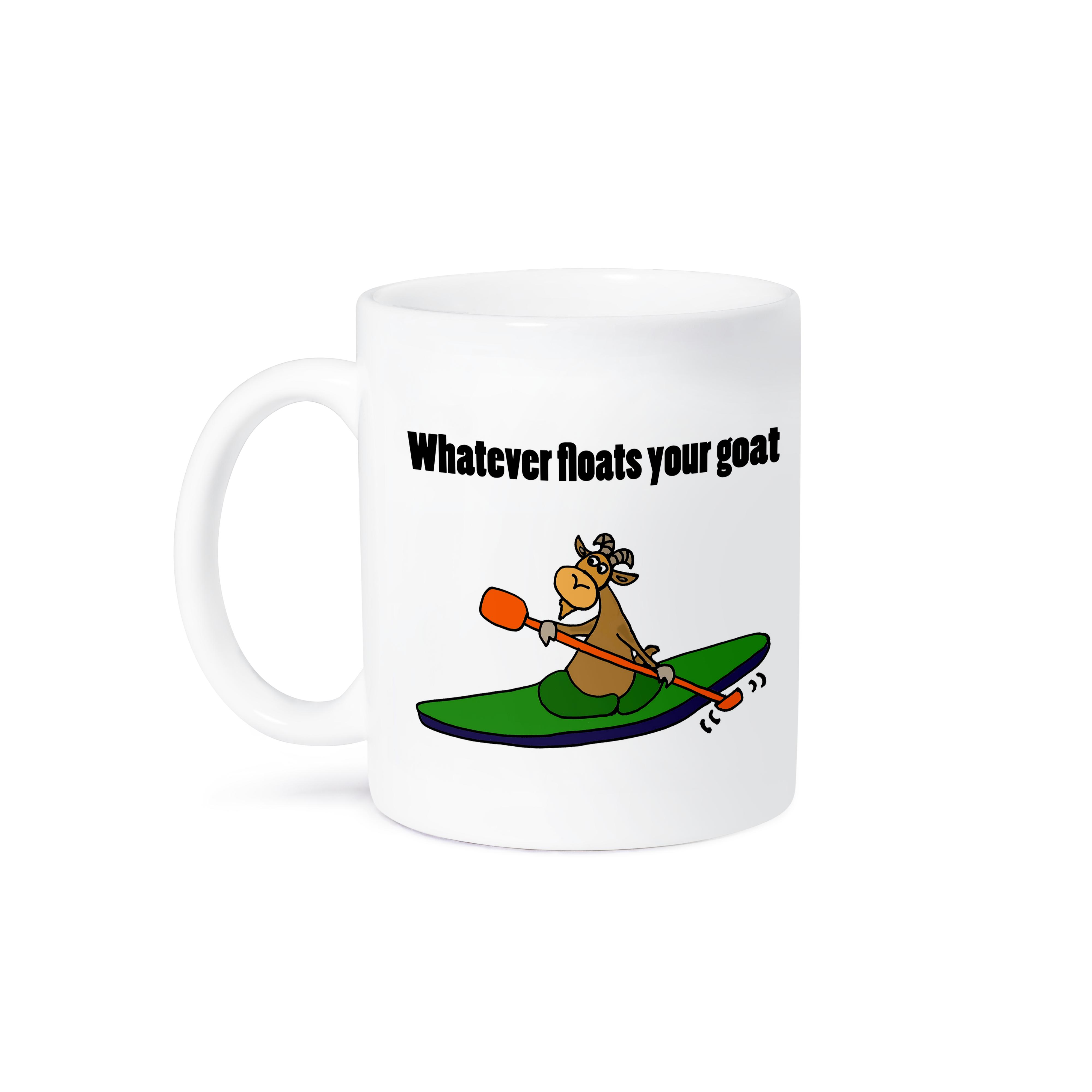 3dRose All Smiles Art Funny - Funny Goat kayaking says Whatever Floats your Goat - Mugs (mug_240609)