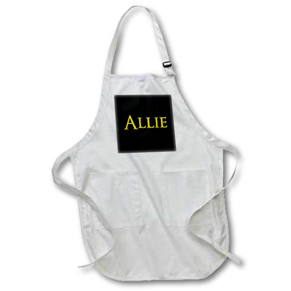 Apron - Allie common woman name in the America. Yellow on black charm Alexis Design - Popular Female Names in USA