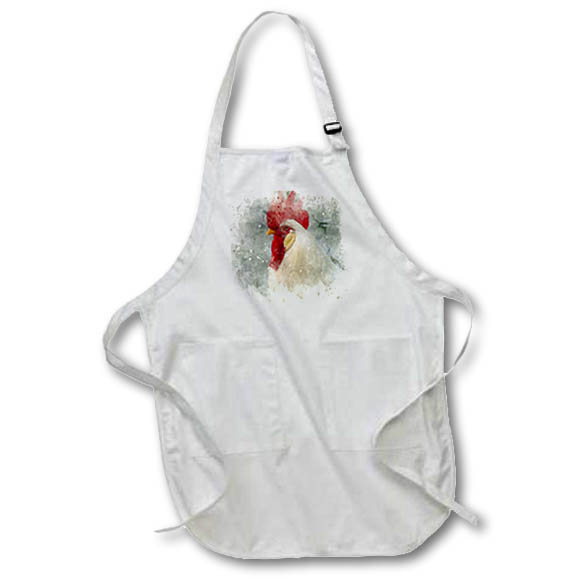 Image Of Watercolor Rooster Apron is made of a 65/35 poly/cotton blend. Whether it is put to use in a restaurant or at home, this apron will always help to keep you clean. Full length features adjustable neck strap. Medium length features non-adjustable neck strap that fits over your head. Both sizes also tie around the waist.