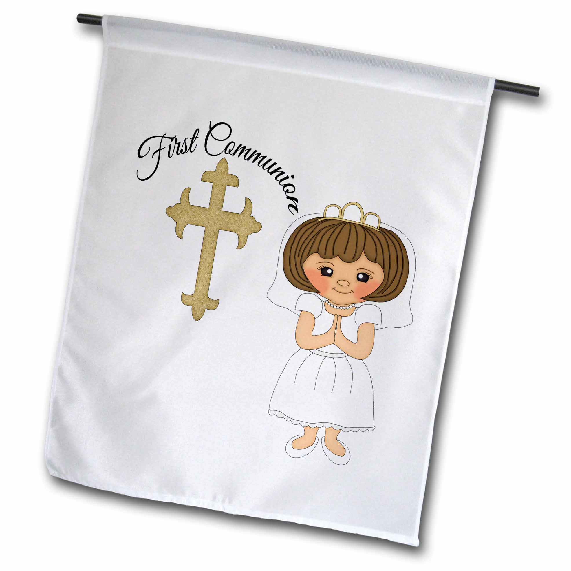3dRose Anne Marie Baugh - Religious - First Communion Cross with Little Girl Illustration - Flags (fl_222497)