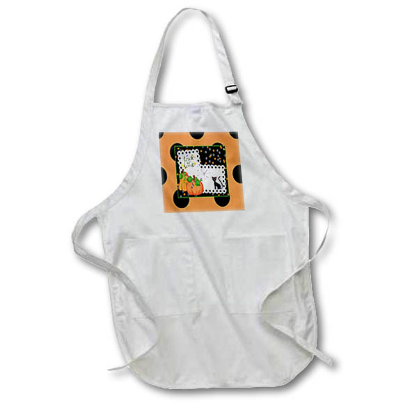 3dRose Apron - Beverly Turner Halloween Design - Trick or Treat, Black Cat, Spider Web Pumpkins Dots