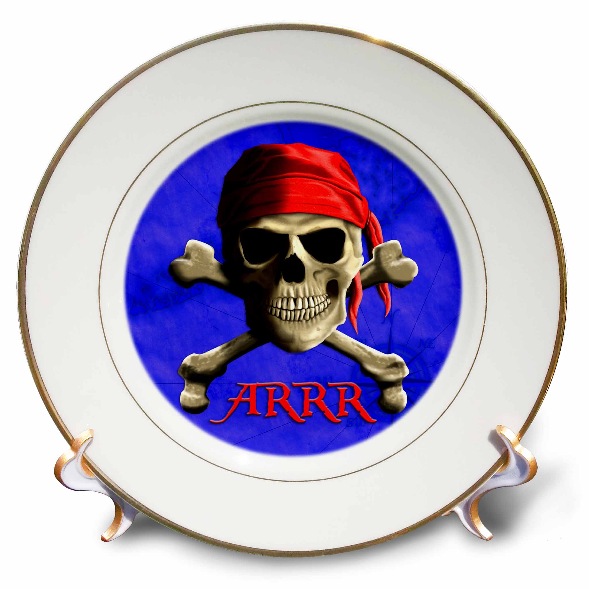 3dRose ARRR Talk Like a Pirate Jolly Roger Pirate Skull on Sailing Chart. - Plates (cp_351501)