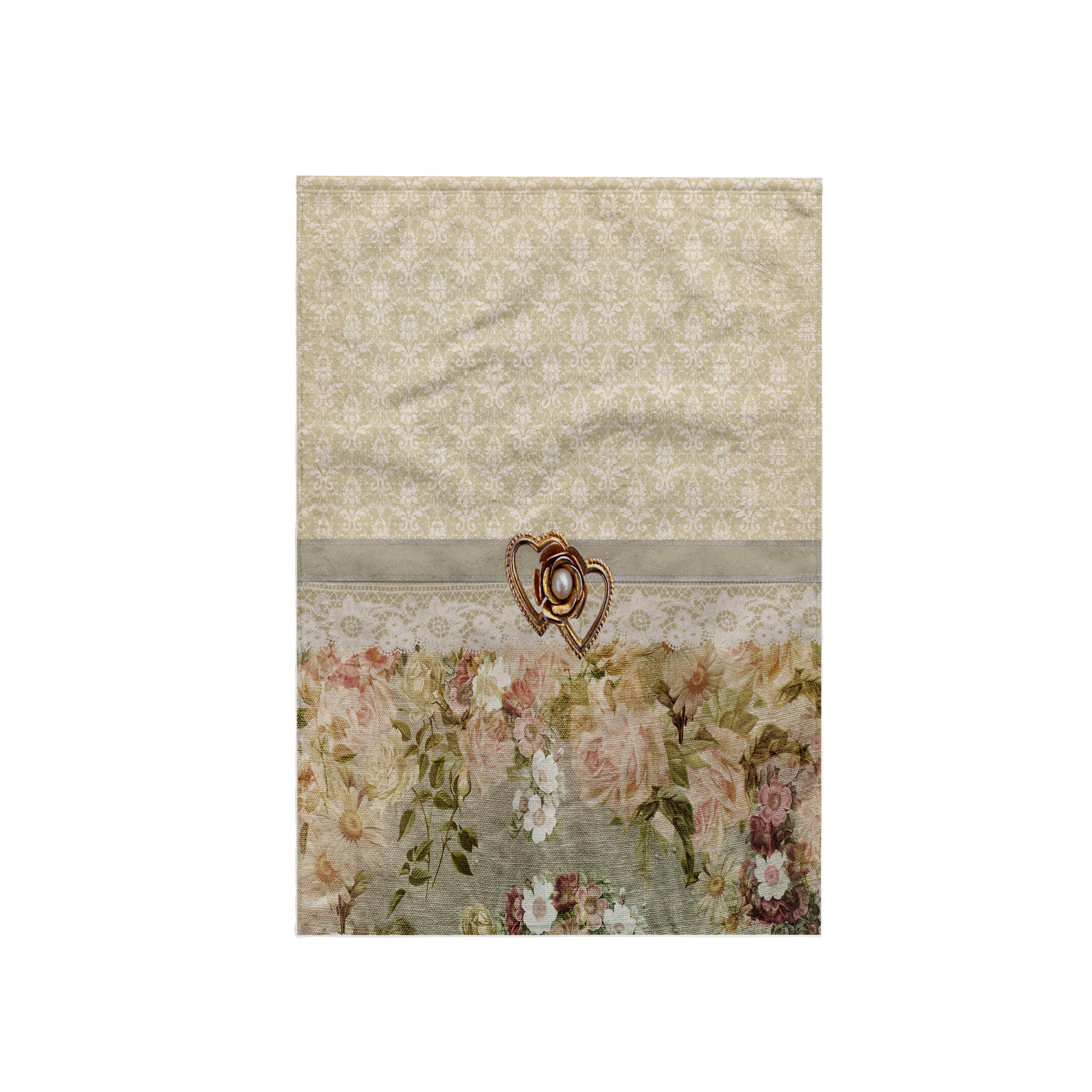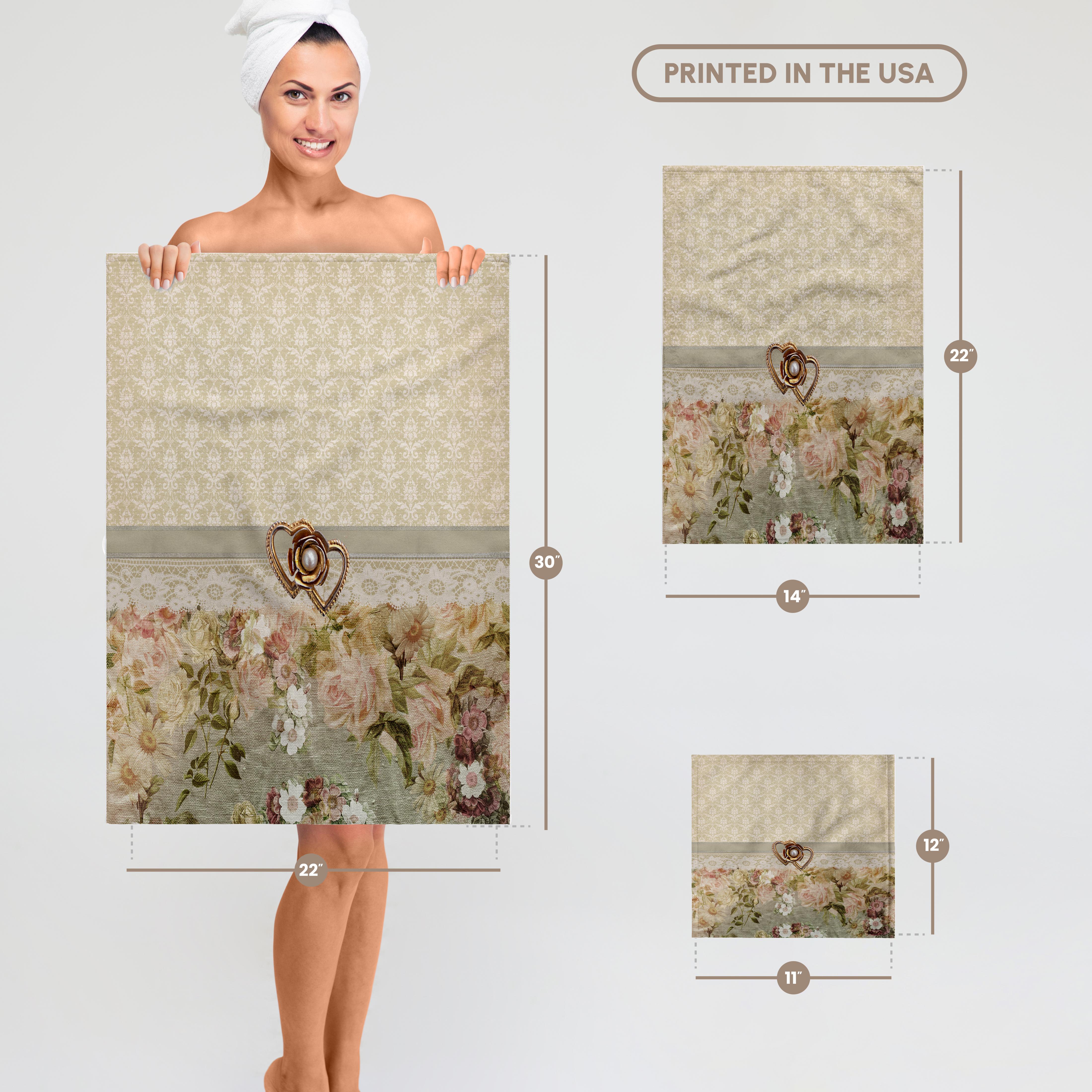 3dRose Beautiful Gold Heart, Pearl Look, Ribbon, Lace, Rose Flowers, Pink - Towels (twl-240779)