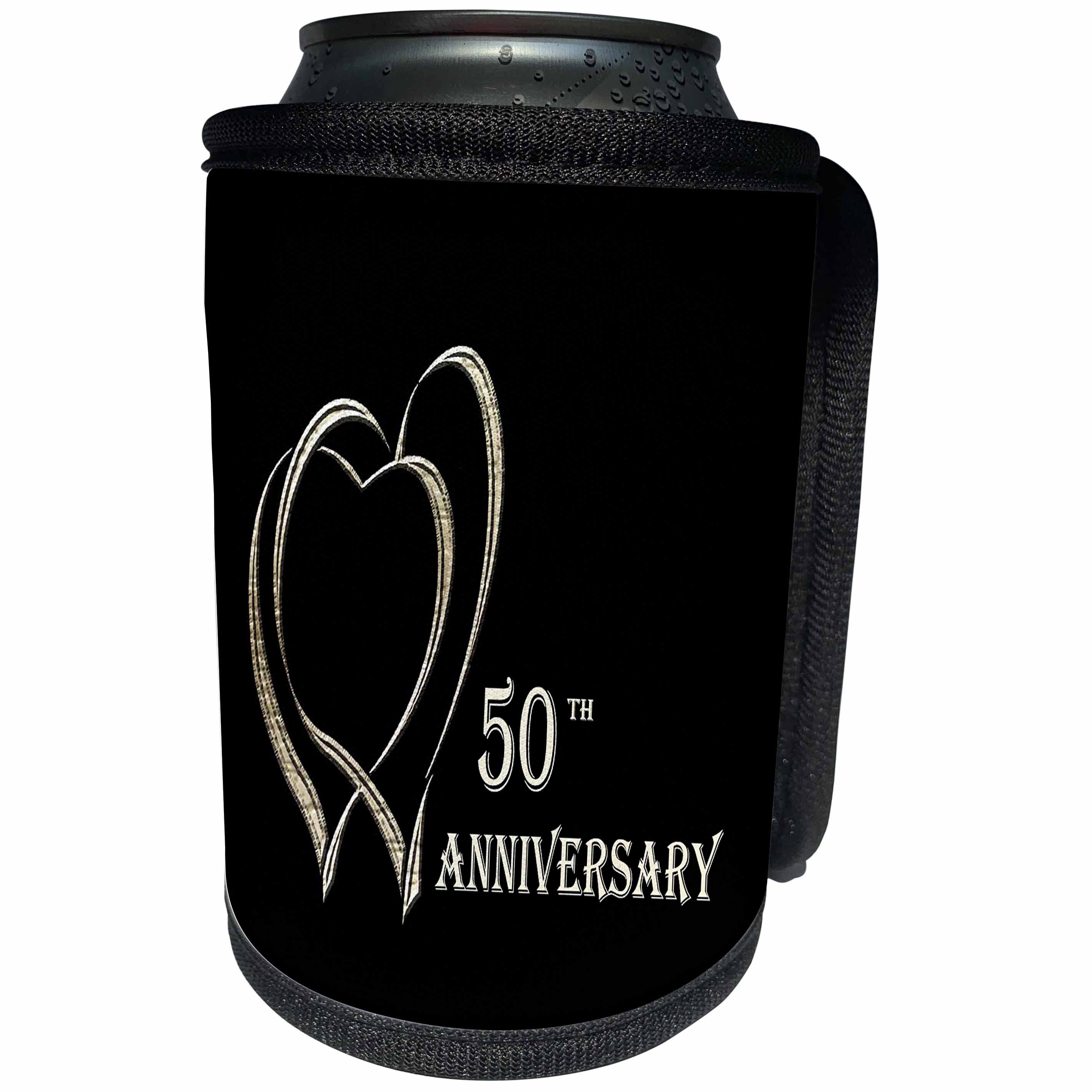 3dRose Beverly Turner Anniversary Design - Two Gold Hearts 50th Anniversary - Can Cooler Bottle Wrap (cc_29617)