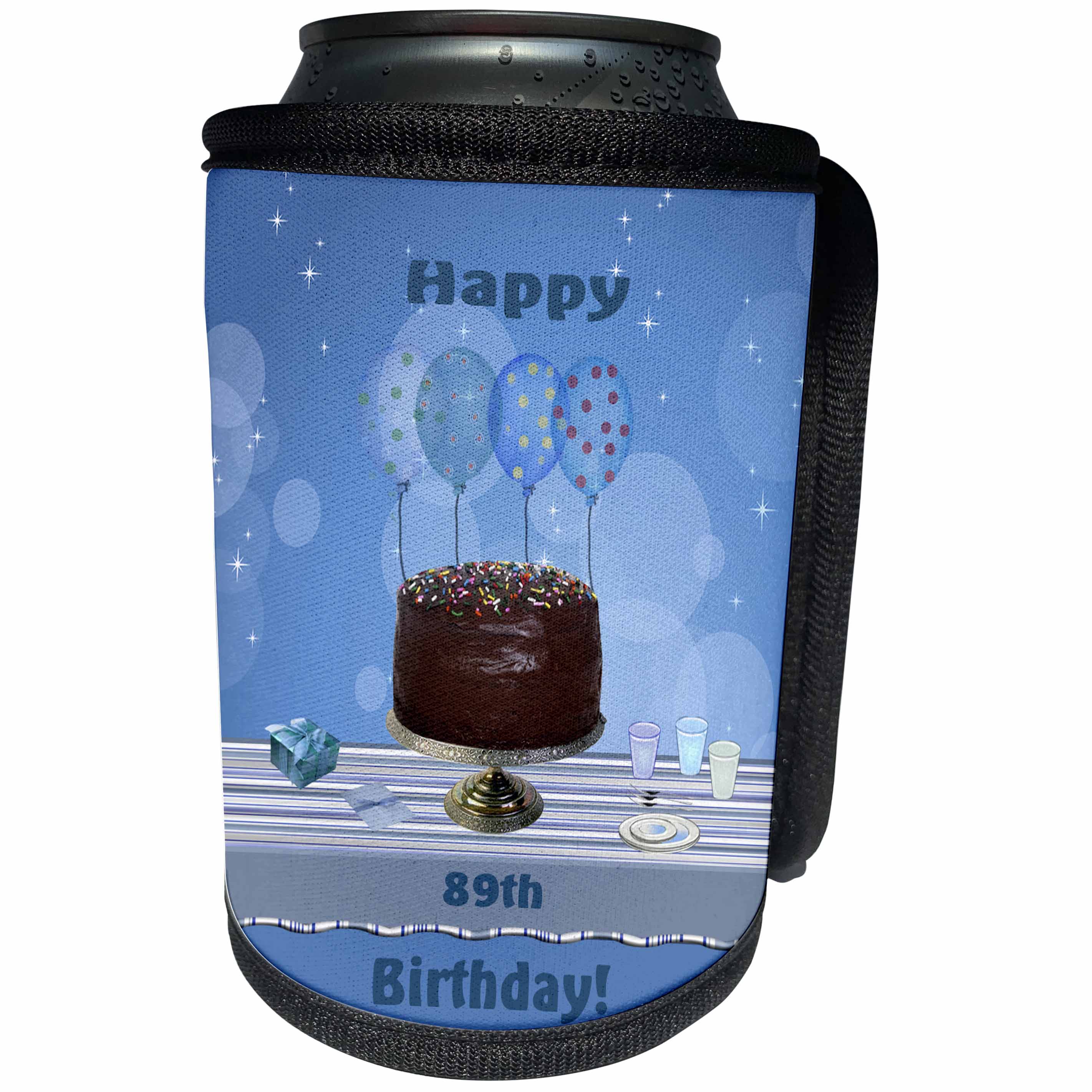 3dRose Beverly Turner Birthday Design - 89th Birthday Party with Chocolate Cake and Blue Balloons - Can Cooler Bottle Wrap (cc_123975)