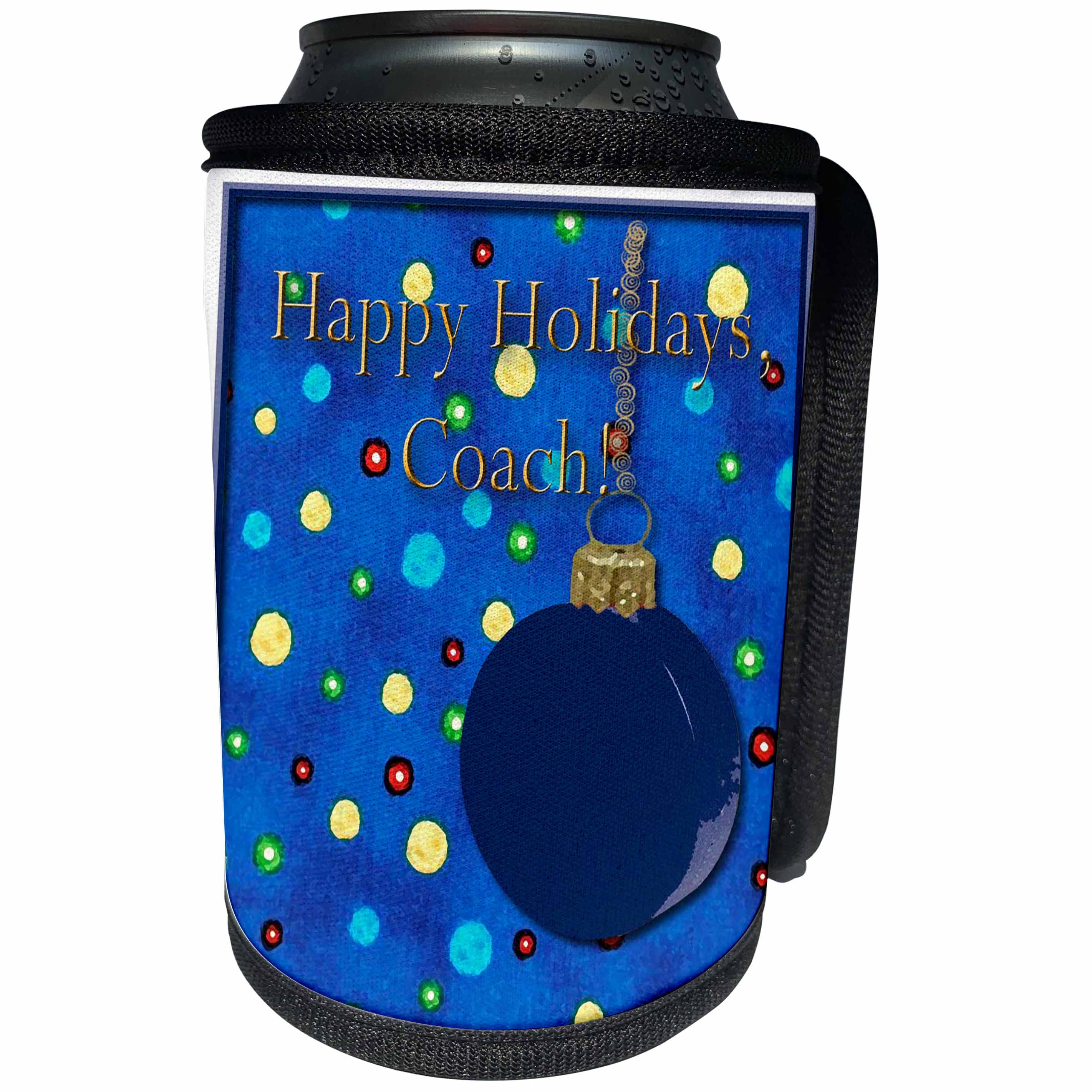 3dRose Beverly Turner Christmas Design - Happy Holidays, Coach, holiday ornament with colorful lights - Can Cooler Bottle Wrap (cc_17498)