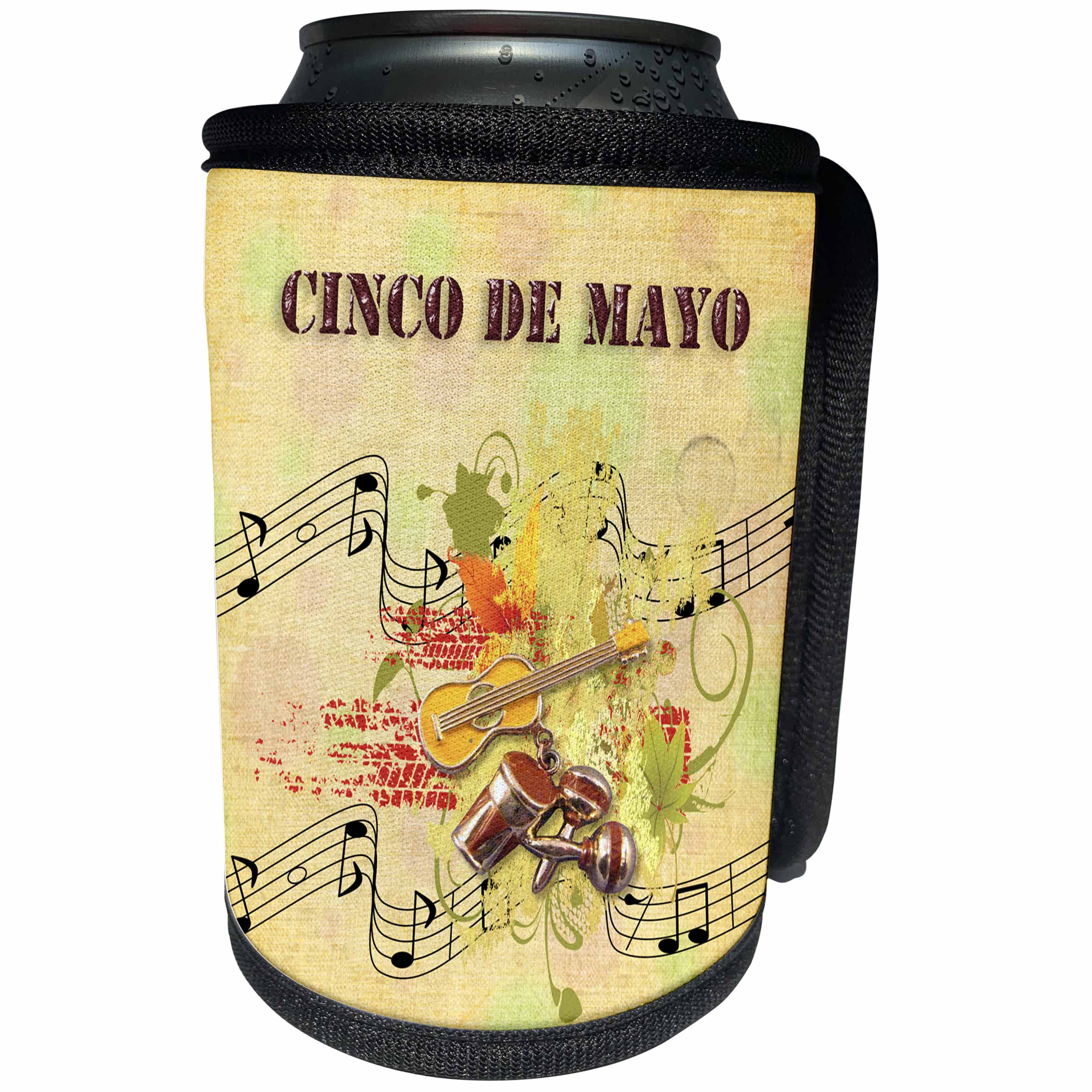 3dRose Beverly Turner Cinco De Mayo Design - Cinco de Mayo Maracas, Guitar, Bongos, Musical Notes Abstract, Yellow - Can Cooler Bottle Wrap (cc_244235)