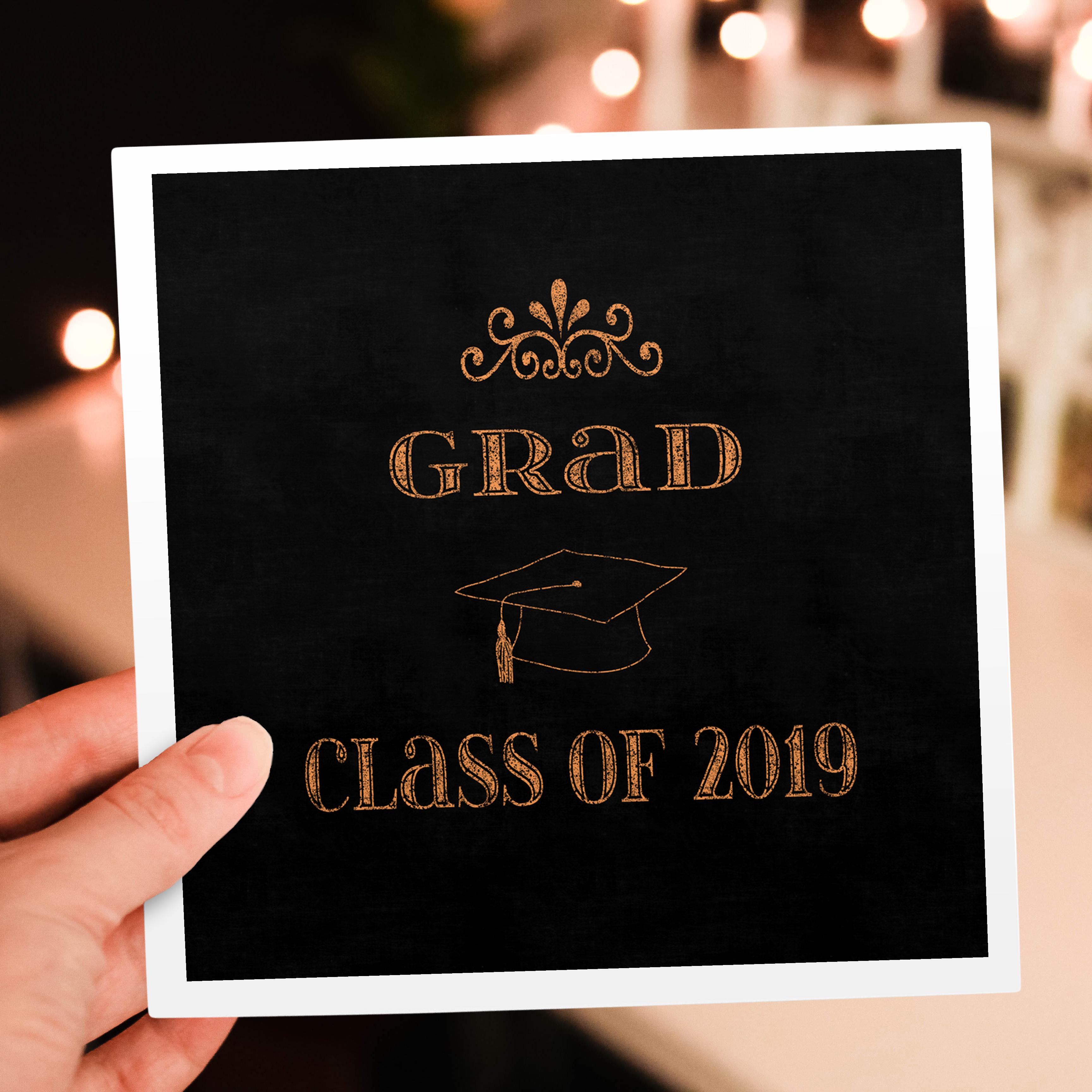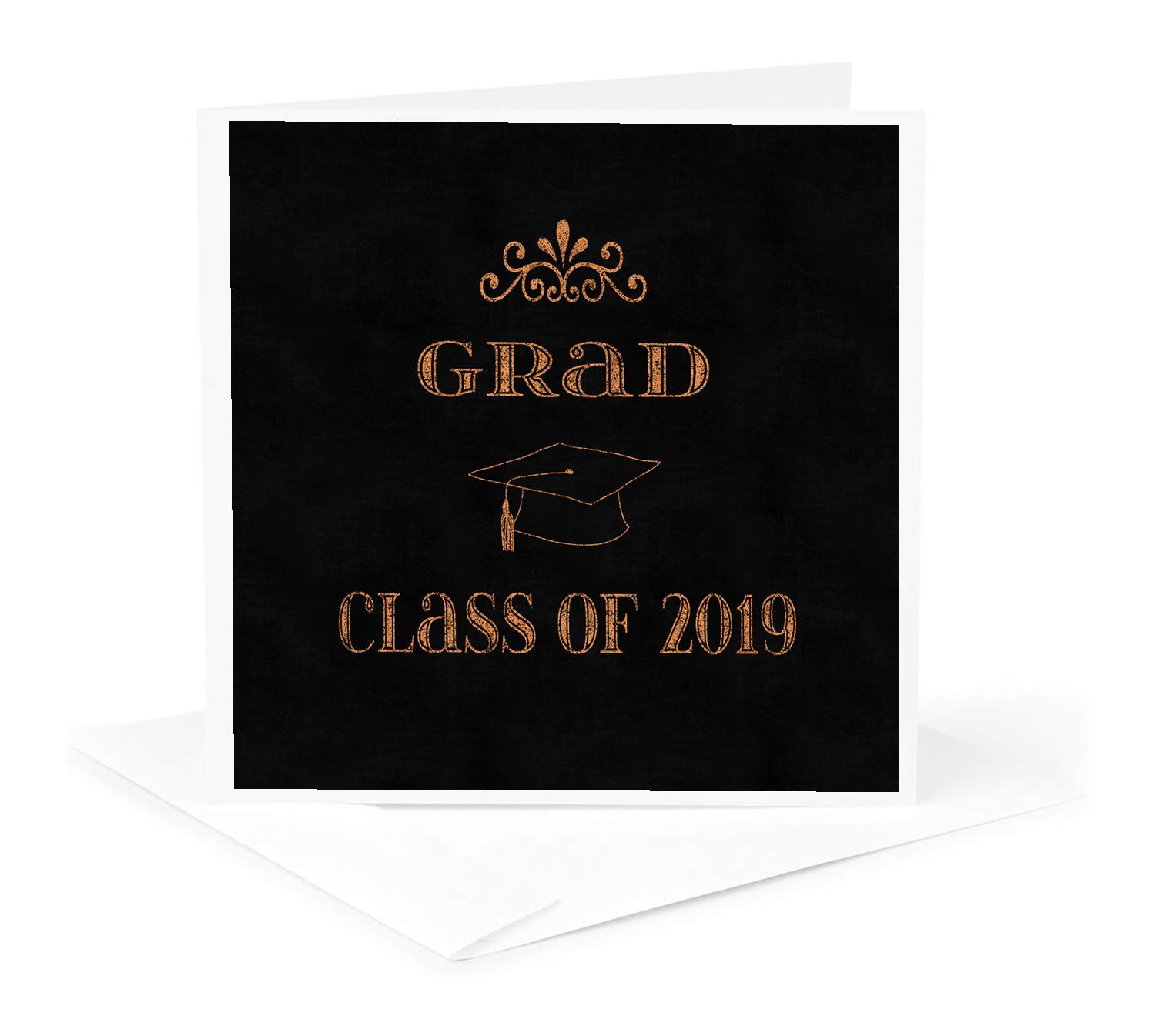 3dRose Beverly Turner Graduation Design - Caulk-broad Style Design, Class of 2019, Graduation Cap, Orange - Greeting Cards
