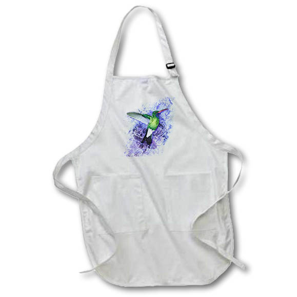 Humingbird on Blue Apron is made of a 65/35 poly/cotton blend. Whether it is put to use in a restaurant or at home, this apron will always help to keep you clean. Full length features adjustable neck strap. Medium length features non-adjustable neck strap that fits over your head. Both sizes also tie around the waist.