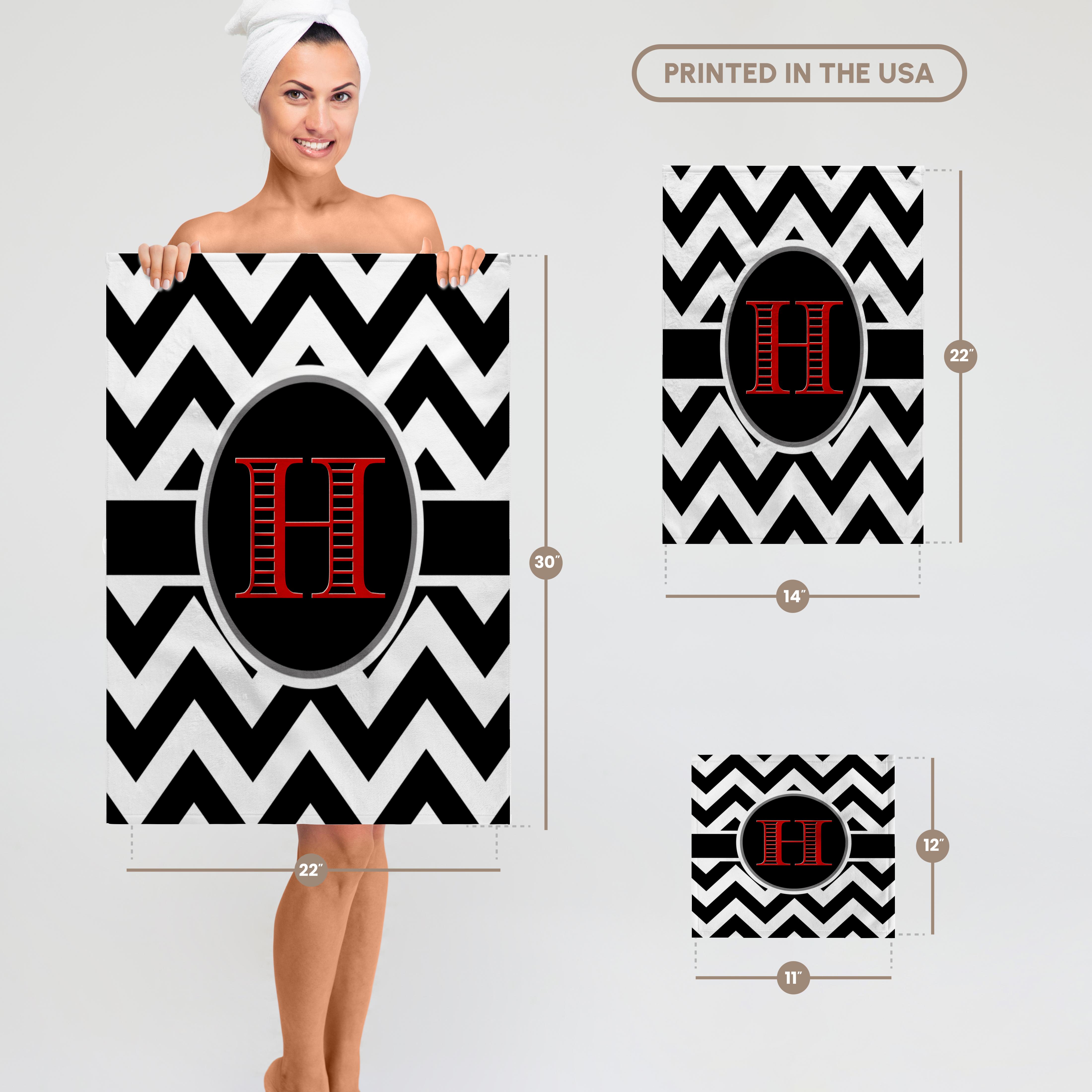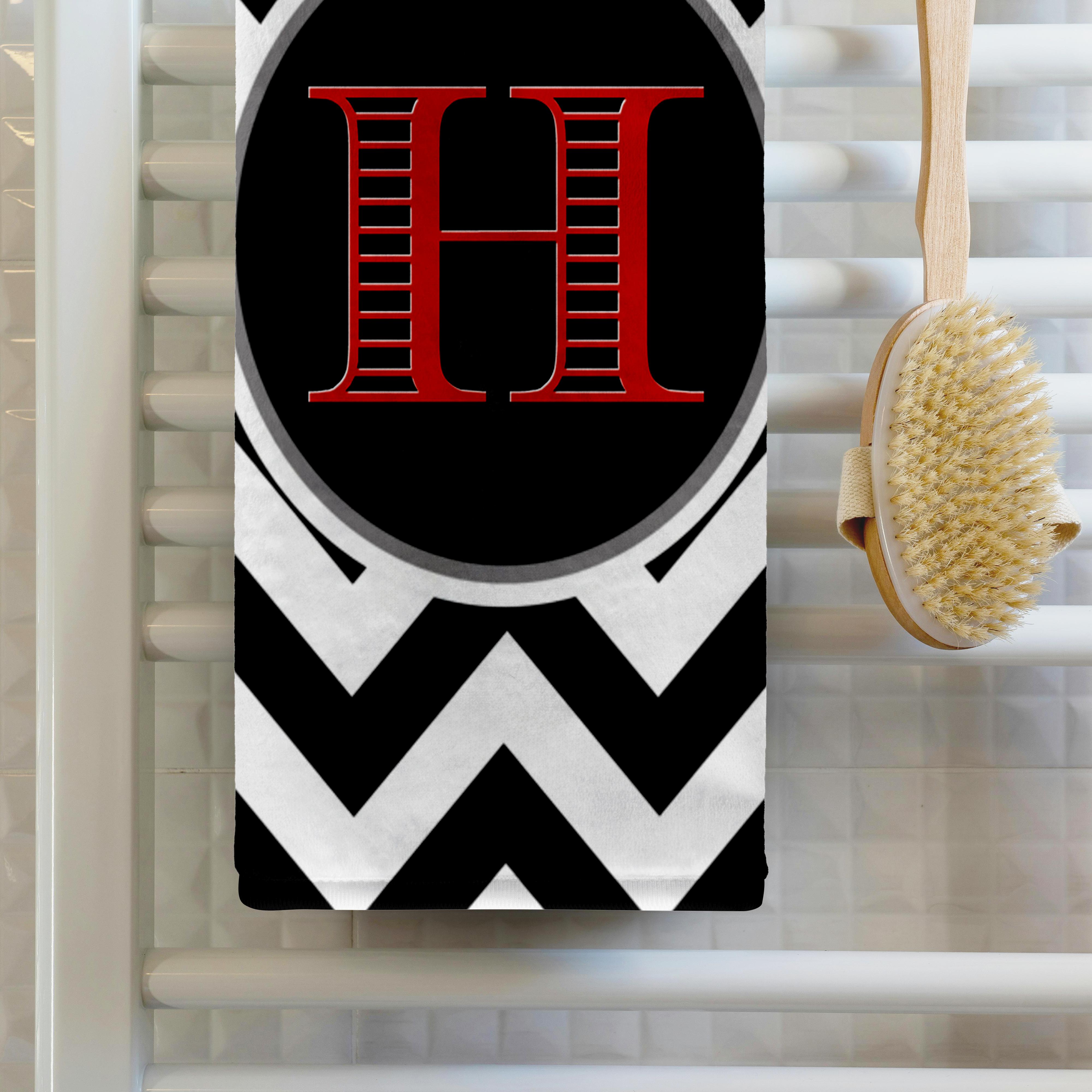 3dRose BrooklynMeme Designs - Black and White Chevron Monogram red Initial H - Towels (twl-252167)