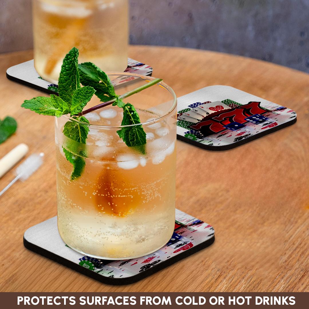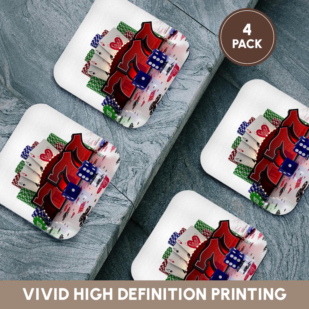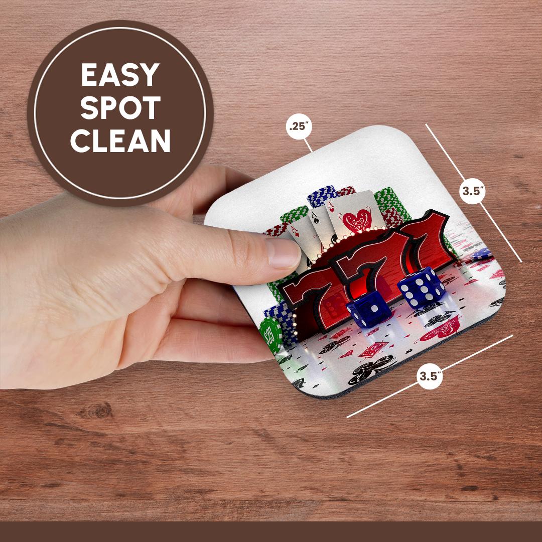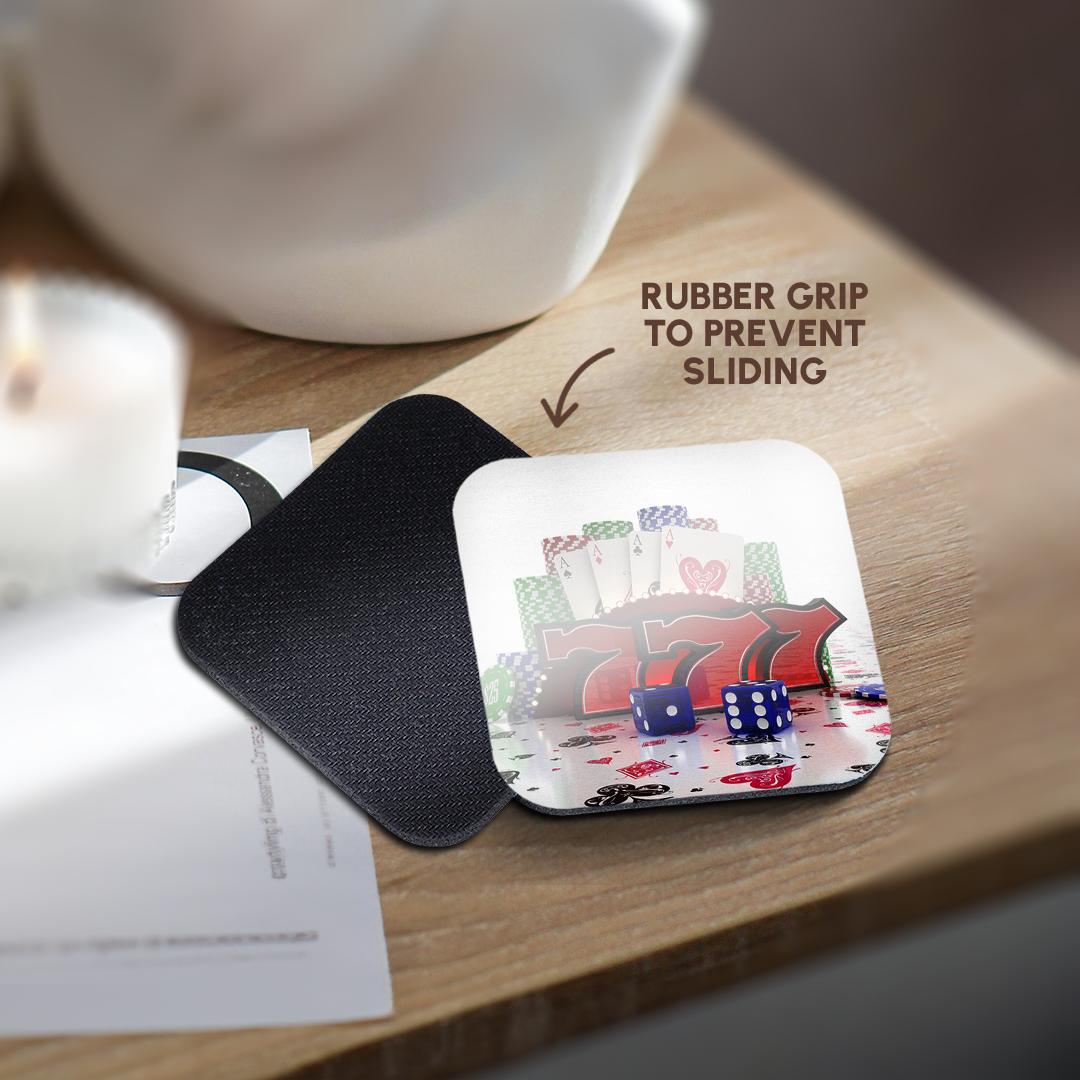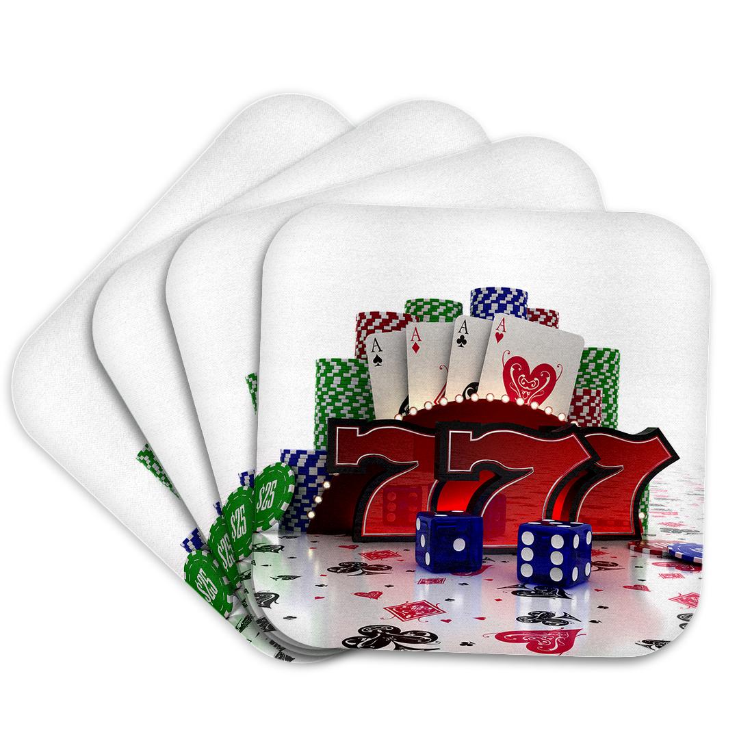 3dRose Carsten Reisinger Illustrations - Casino concept with poker cards chips dice and slot style sevens - Coasters (cst_155012)