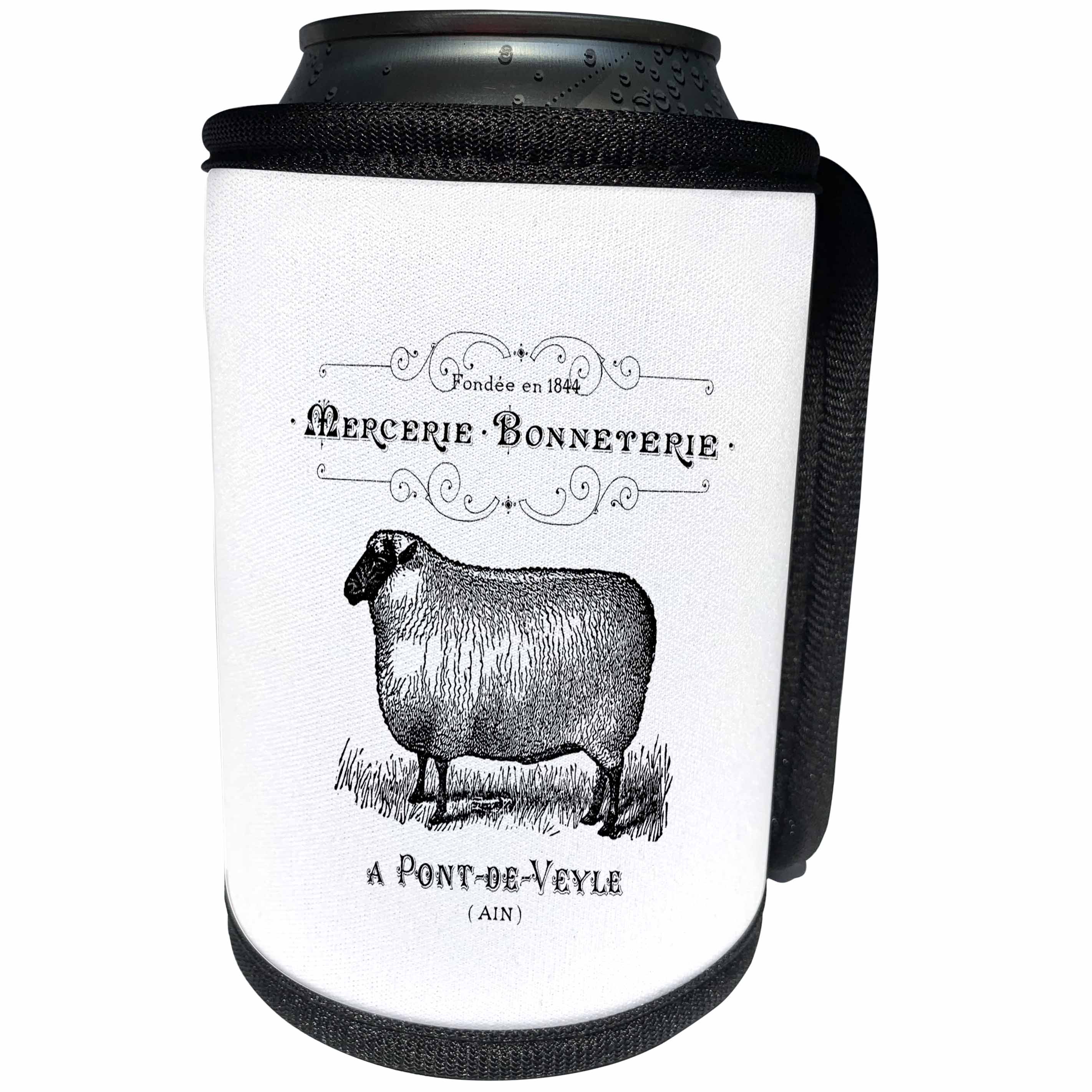 3dRose Cassie Peters Vintage - Vintage Sheep French - Can Cooler Bottle Wrap (cc_298905)