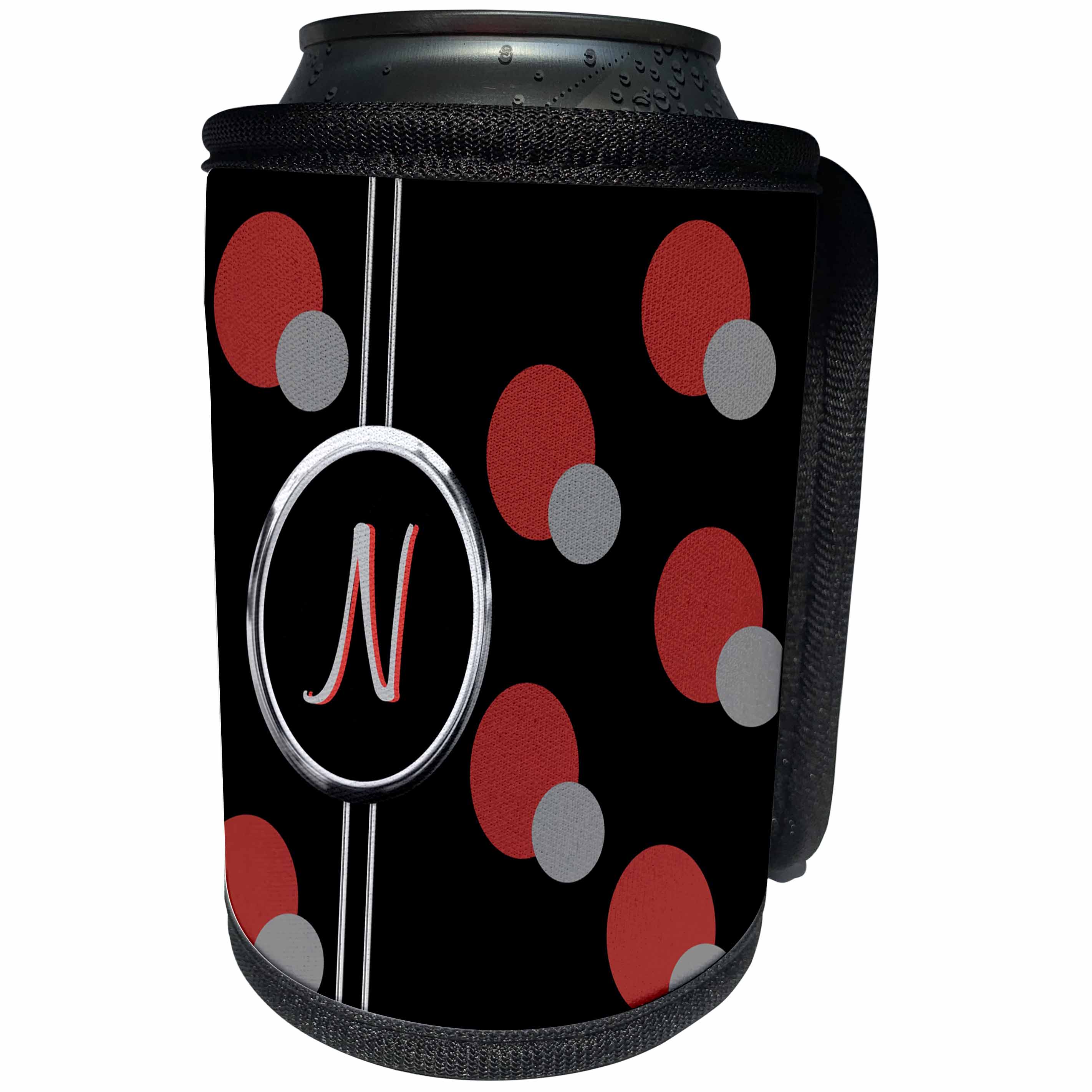 3dRose Charlyn Woodruff - CW Designs Monogram - Circles - Modern Geometric Black Red Grey Circle Pattern Monogram Letter N - Can Cooler Bottle Wrap (cc_215257)