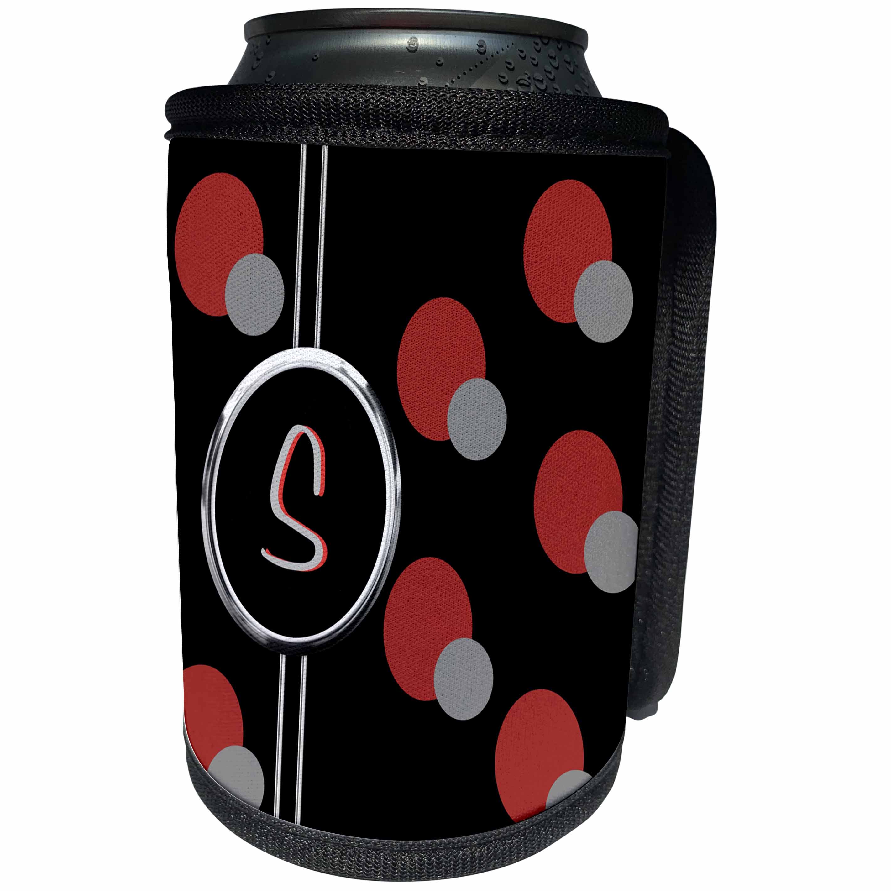 3dRose Charlyn Woodruff - CW Designs Monogram - Circles - Modern Geometric Black Red Grey Circle Pattern Monogram Letter S - Can Cooler Bottle Wrap (cc_215262)