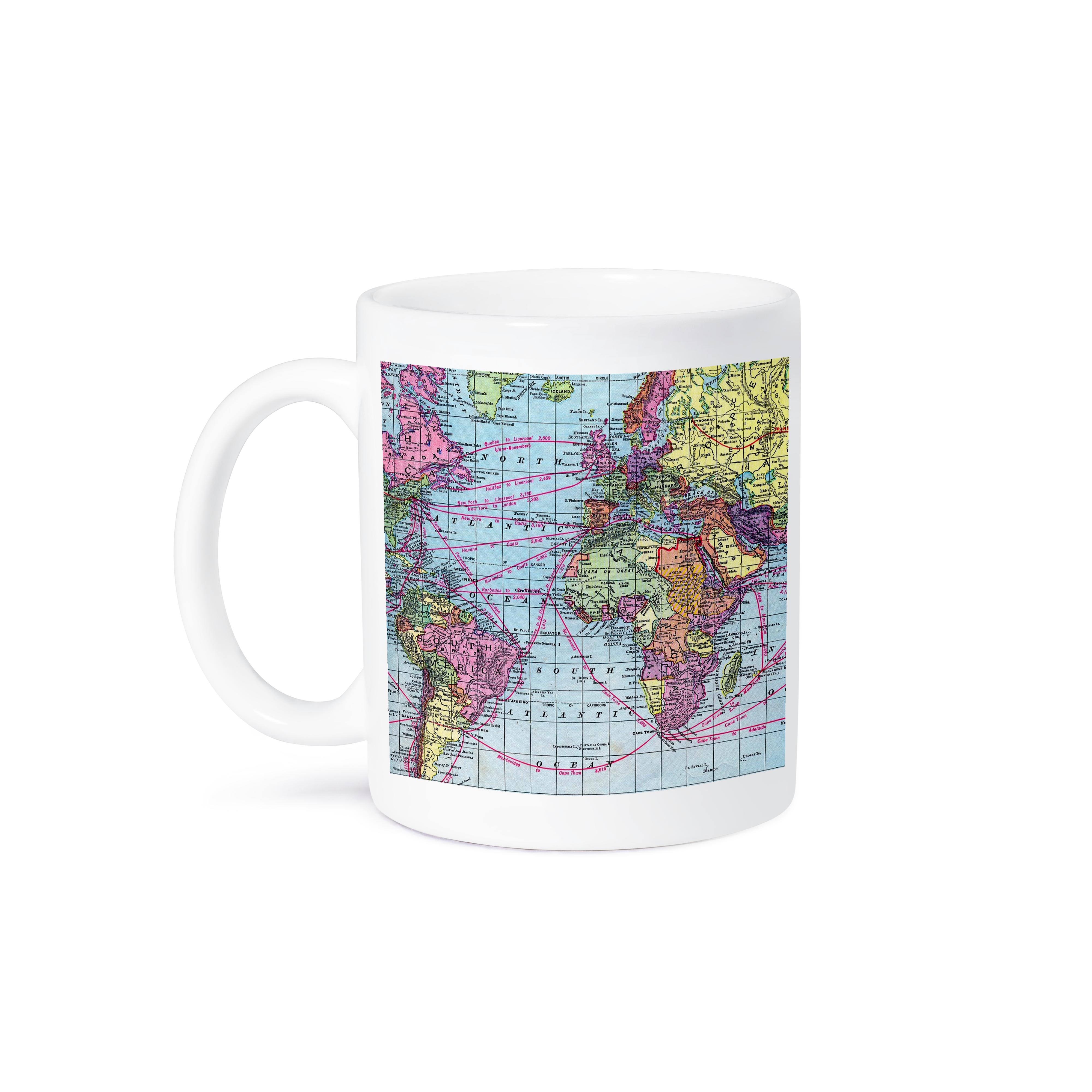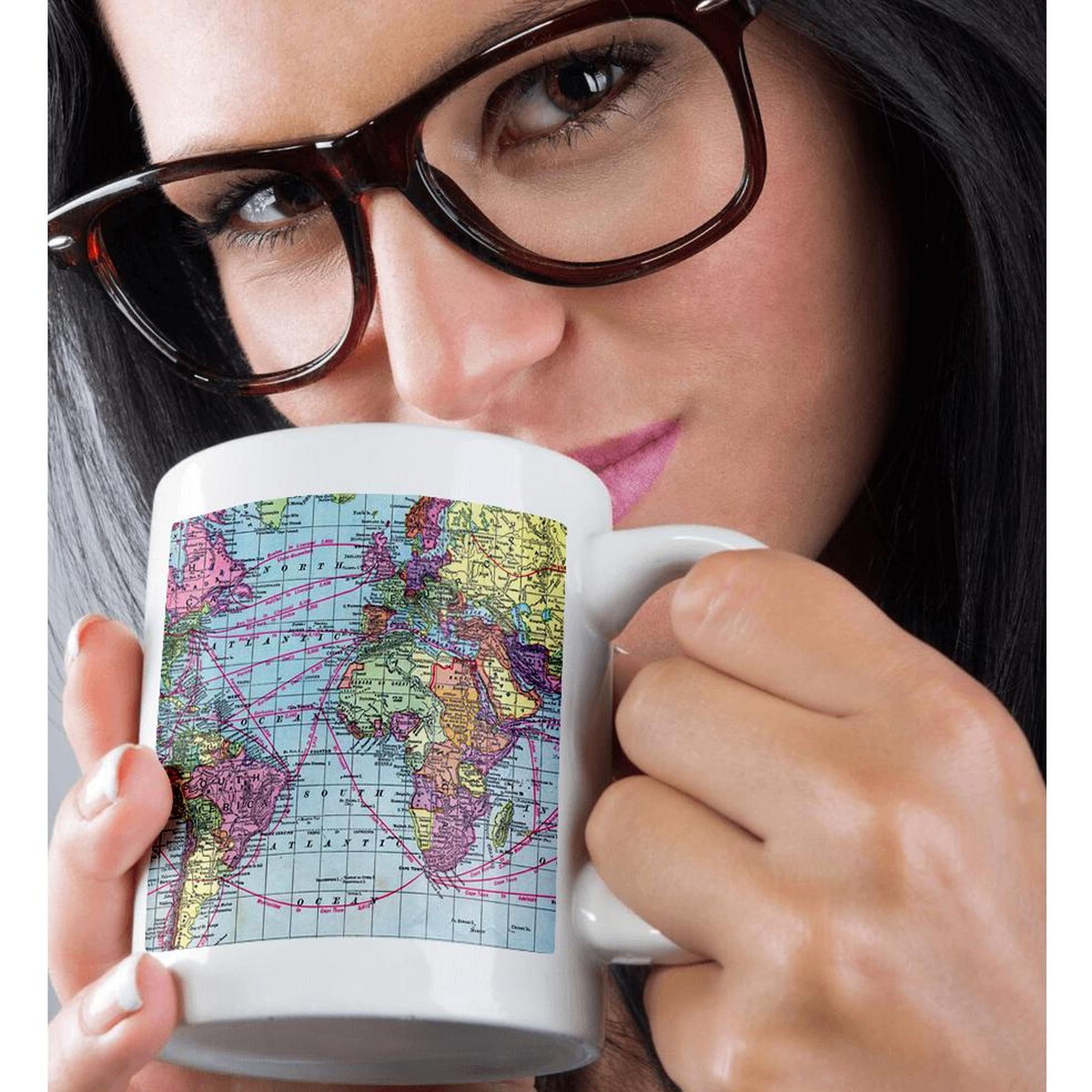 3dRose Colorful Vintage World Map - distance calculations between countries on... - Mugs (mug_112941)