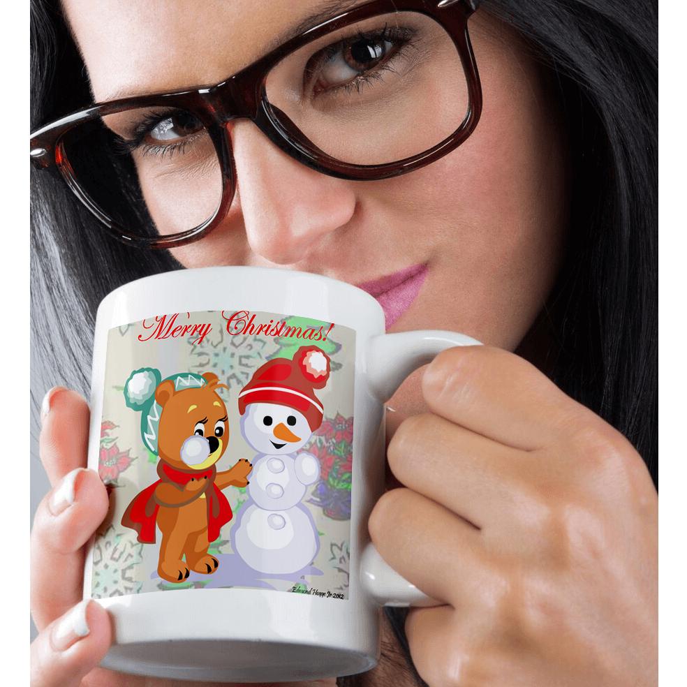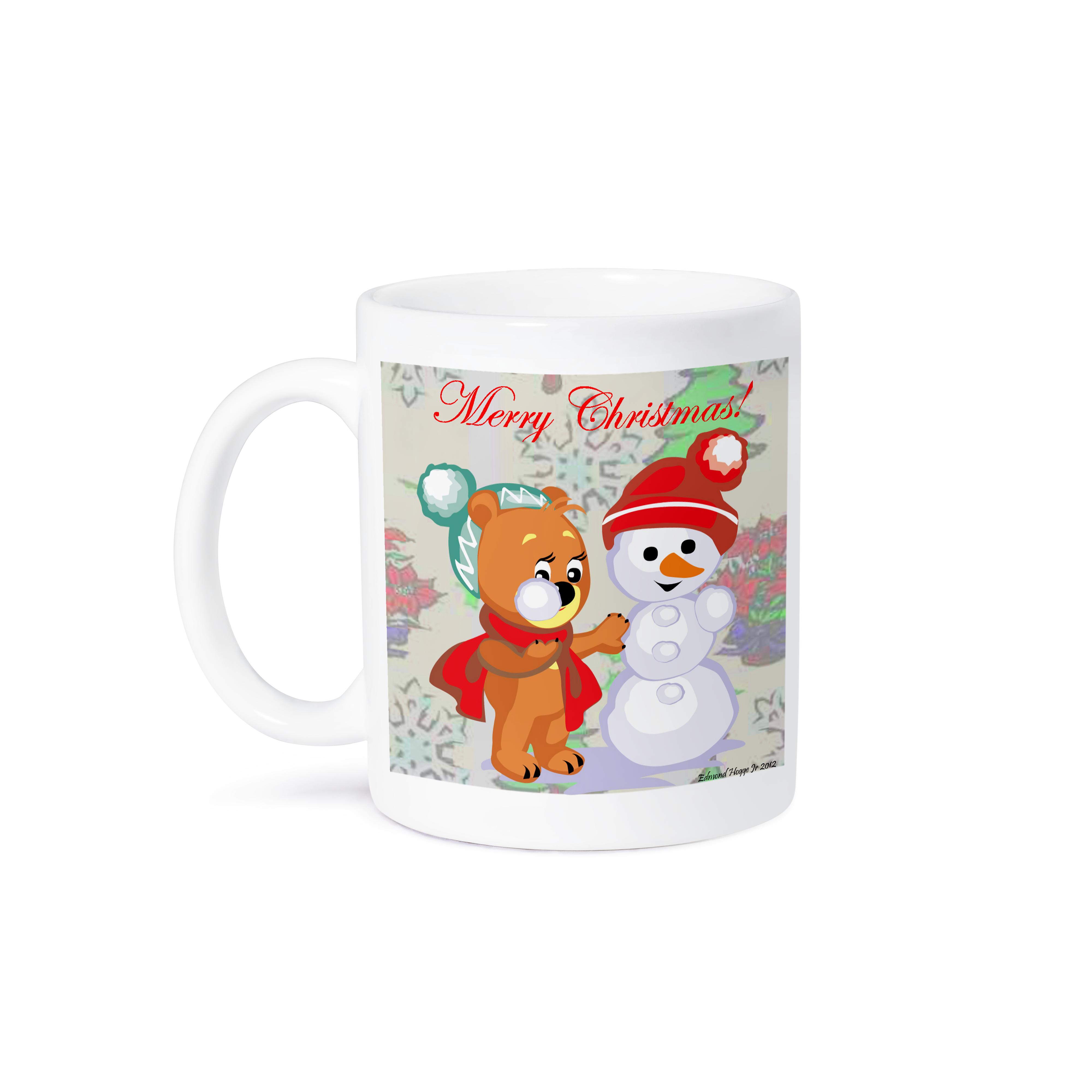 Cute Bear and Snowman With Christmas Background and Text Mug is available in both 11 oz and 15 oz. Why drink out of an ordinary mug when a custom printed mug is so much cooler? This ceramic mug is lead free, microwave safe. Image is printed on both sides. Hand washing is recommended.