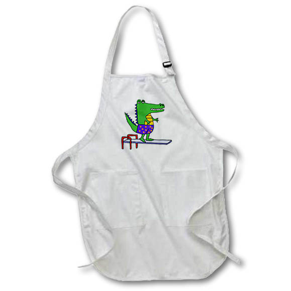 Apron - Cute Funny Alligator Diver in Polka Dot Swim Trunks on Diving Board Sports and Hobbies