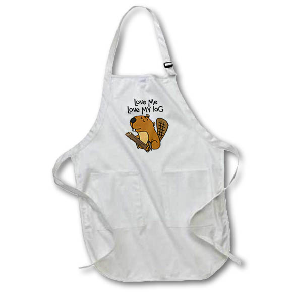 Cute Funny Beaver with tree says Lve me Love my Log Pun Apron is made of a 65/35 poly/cotton blend. Whether it is put to use in a restaurant or at home, this apron will always help to keep you clean. Full length features adjustable neck strap. Medium length features non-adjustable neck strap that fits over your head. Both sizes also tie around the waist.