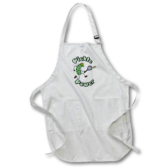 Apron - Cute Funny Pickle Playing Pickleball Pickle Power Sports Cartoon Sports and Hobbies