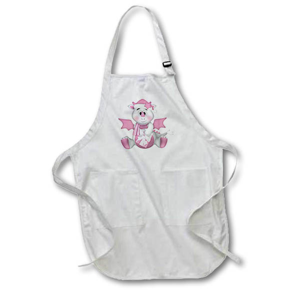 Cute Pink and White Baby Dragon Illustration Apron is made of a 65/35 poly/cotton blend. Whether it is put to use in a restaurant or at home, this apron will always help to keep you clean. Full length features adjustable neck strap. Medium length features non-adjustable neck strap that fits over your head. Both sizes also tie around the waist.