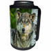 3dRose Danita Delimont - Animals - USA, Minnesota. Close-up of Grey wolf between two birch trees. - Can Cooler Bottle Wrap (cc_231047)