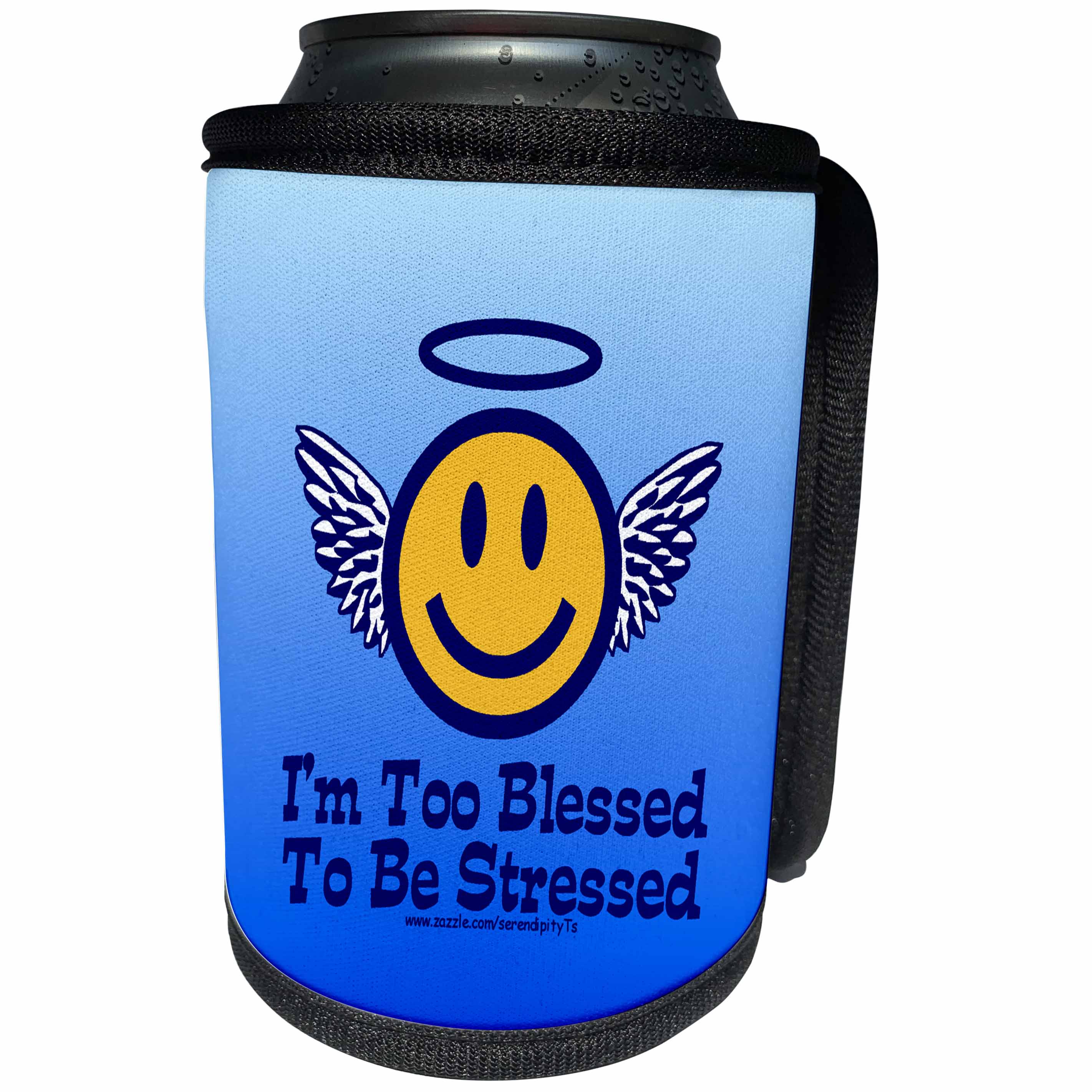 3dRose Deniska Designs Religion - Im Too Blessed To Be Stressed on Blue - Can Cooler Bottle Wrap (cc_12424)