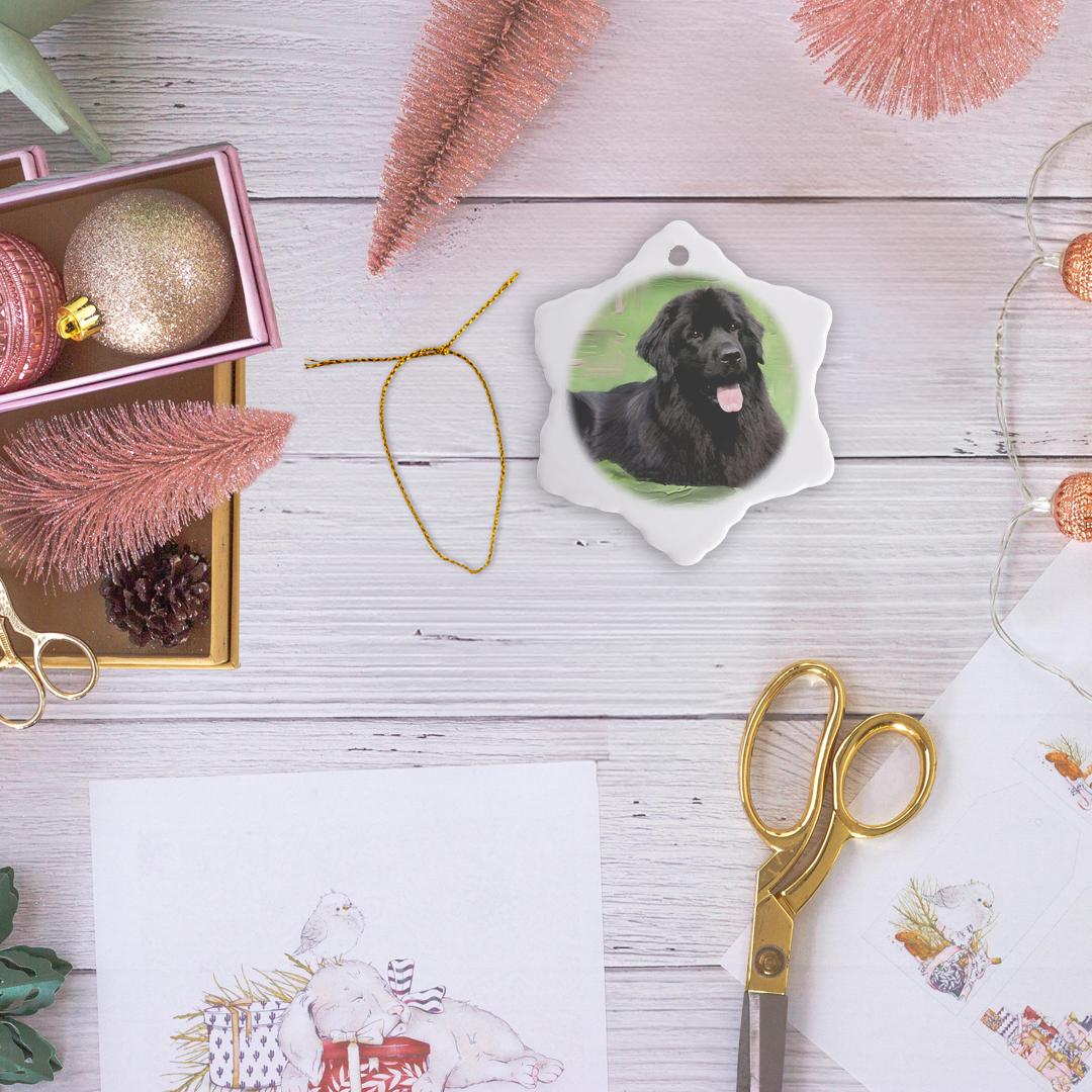 Newfoundland Ornament is a perfect addition to your tree or as a window decoration. This glossy porcelain ornament is a great gift for family and friends, commemorating each holiday or special occasion. Image printed on both sides; measures 3 inches. A strand of gold thread makes it easy to display this fantastic keepsake.