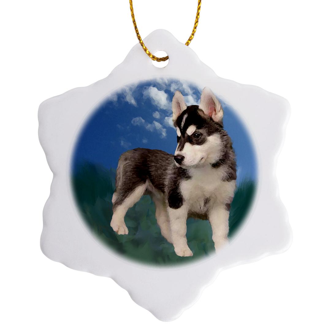 Siberian Husky Puppy Ornament is a perfect addition to your tree or as a window decoration. This glossy porcelain ornament is a great gift for family and friends, commemorating each holiday or special occasion. Image printed on both sides; measures 3 inches. A strand of gold thread makes it easy to display this fantastic keepsake.