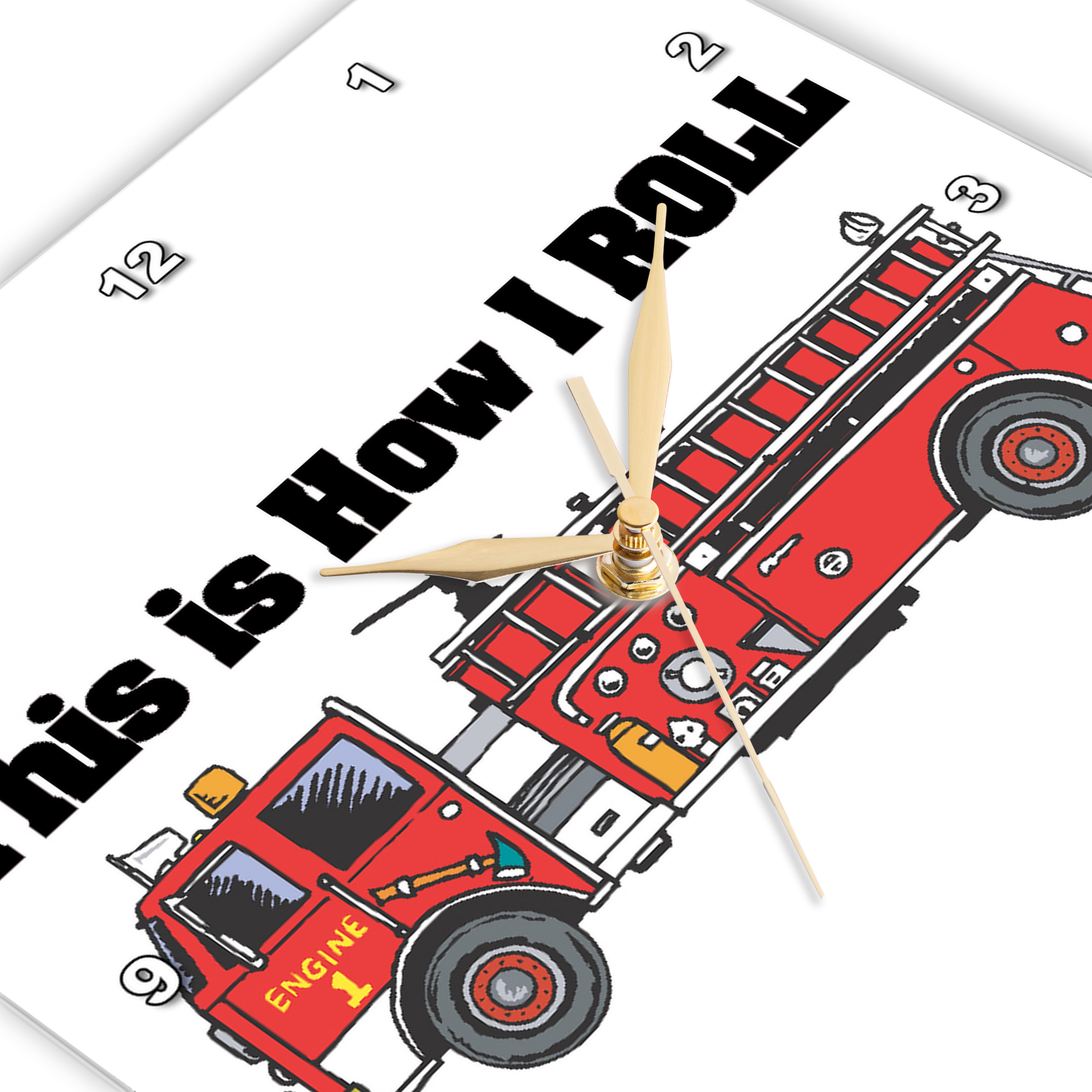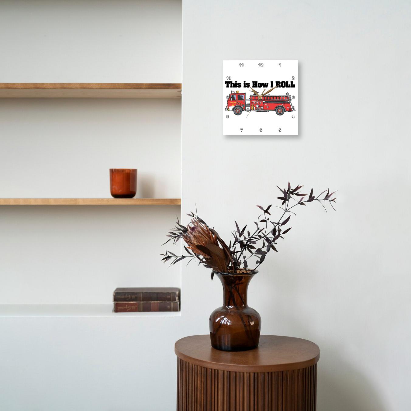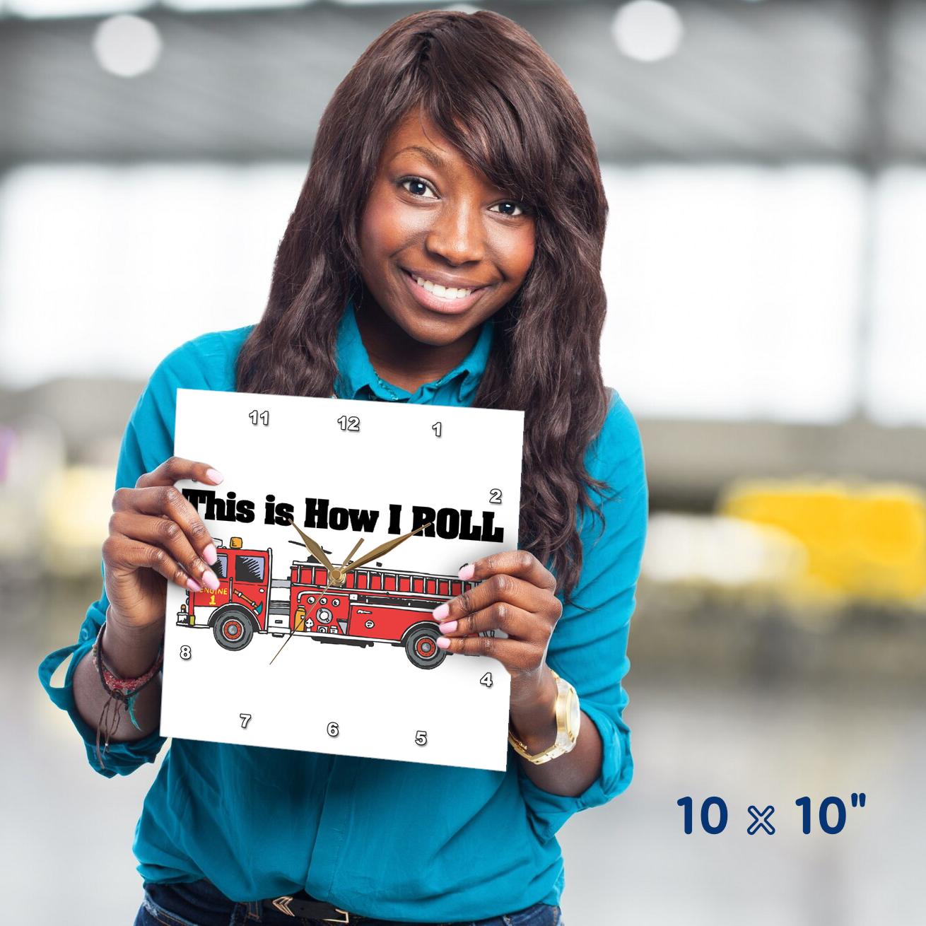 3dRose Dooni Designs Funny and Humorous Designs - This is How I Roll Fire Truck Firemen Design - Wall Clocks (DPP_102607)
