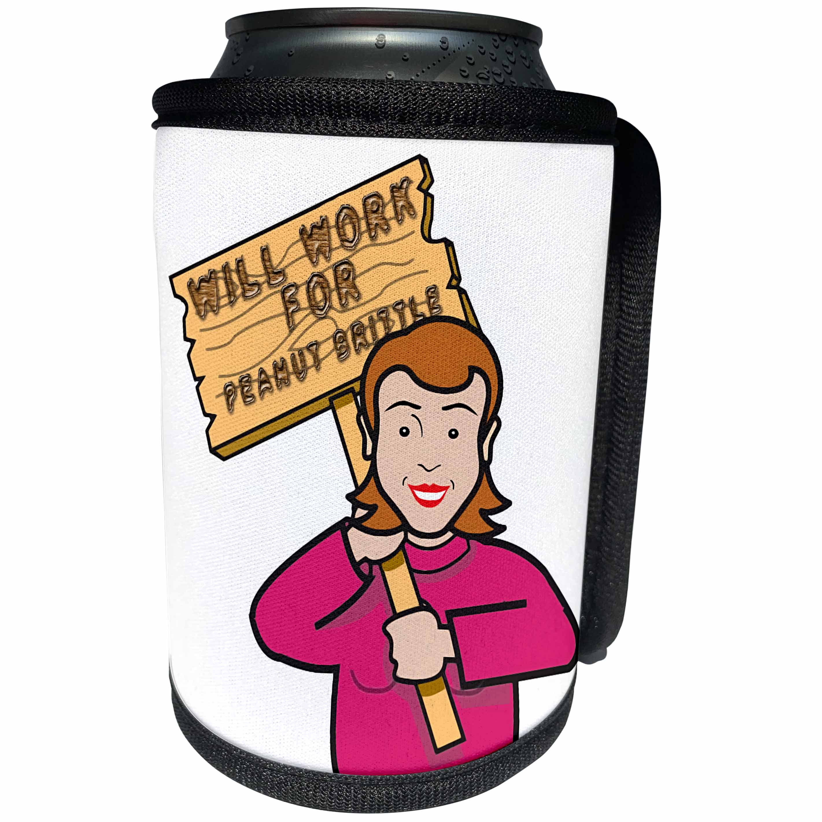 3dRose Dooni Designs Humorous Bribery Signs Sarcasm Designs - Funny Humorous Woman Girl With A Sign Will Work For Peanut Brittle - Can Cooler Bottle Wrap (cc_117360)